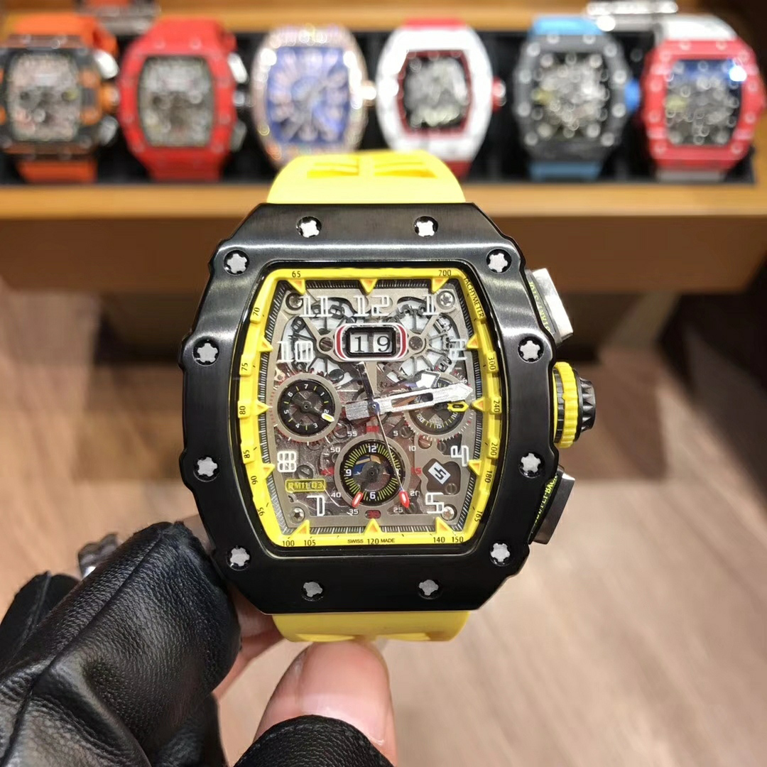 RICHARD RM11-03 brand-new craftsmanship, fashion, and avant-garde hollow design. The latest special boutique men's watch is distinguished and elegant. Gentleman's style, high-end mineral scratch-resistant mirror glass, equipped with 316L stainless steel case, wear-resistant natural imported rubber strap, fully automatic import Mechanical movement size: 49 × 41mm × 15mm The pinnacle of work is beyond ordinary, and it is recommended for you to exquisitely recommend men's fine watches. The guarantee of exquisite inheritance of real effect and quality!