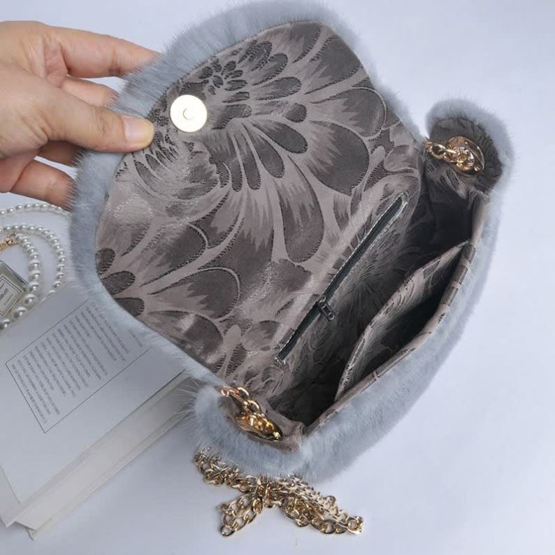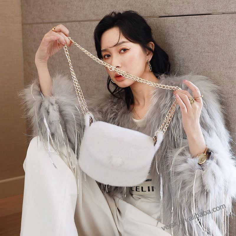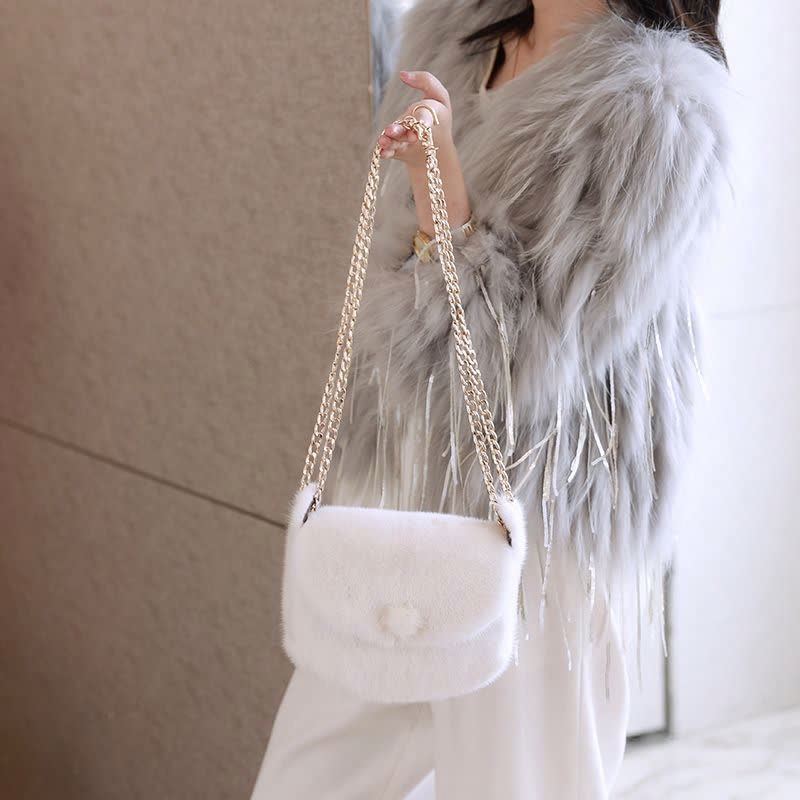 Real Mink Fur Pretty Cat Bag 2022 New Mobile Phone Bag Ladies Hand Bag Ladies Handbags 4 pcs Sets |
