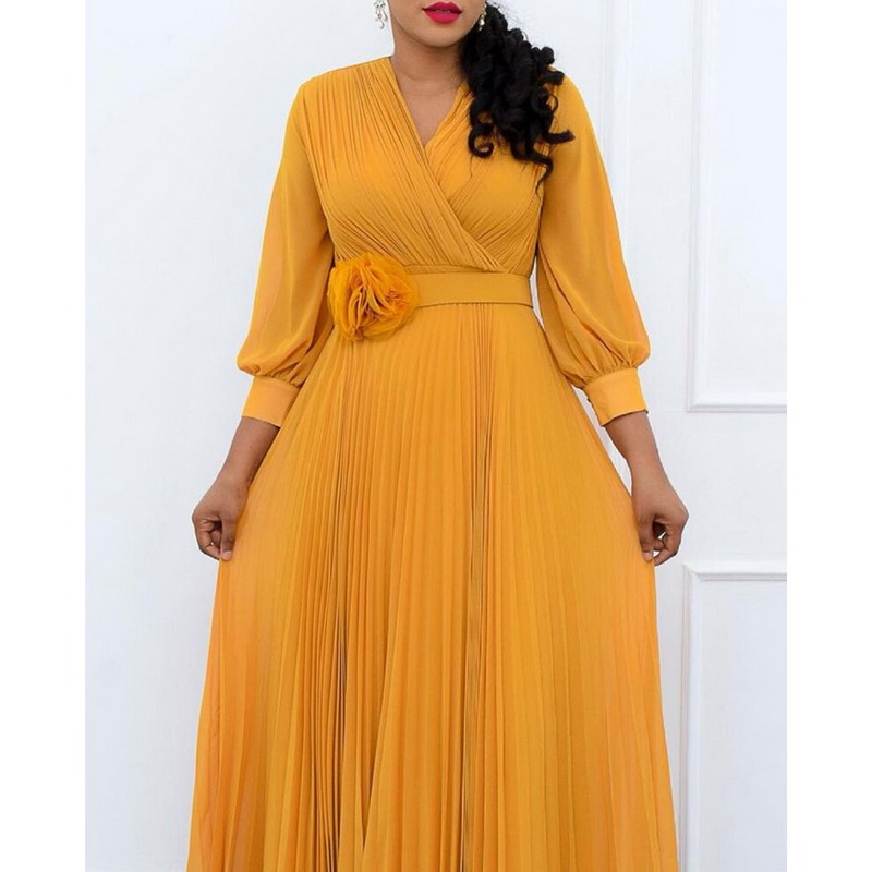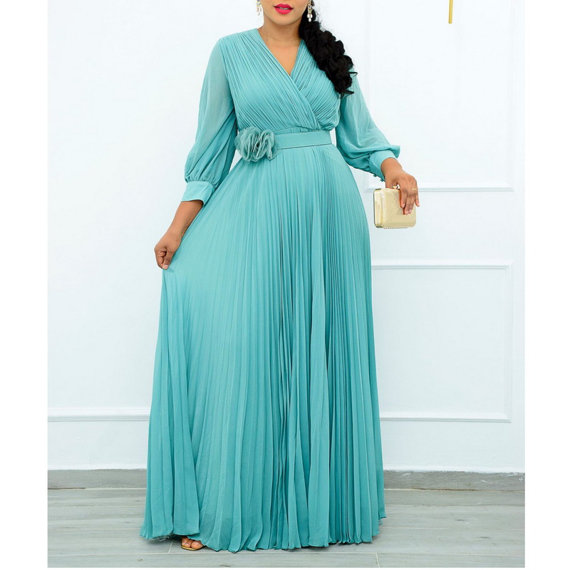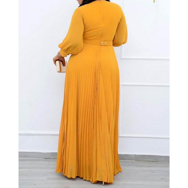 New Design Temperament Tommuter Splicing High Waist Loose Long Dress Plus Size Womens Dress Pleated Dress With Free Belt