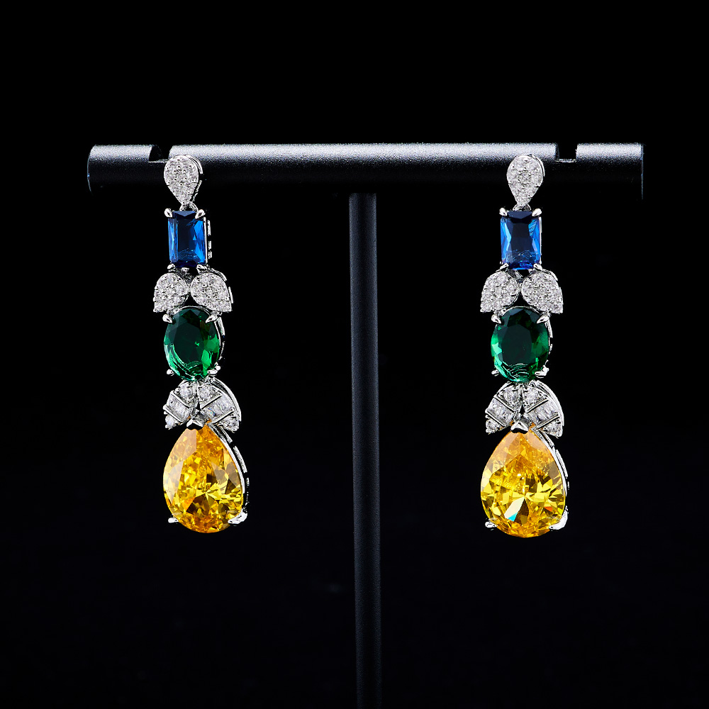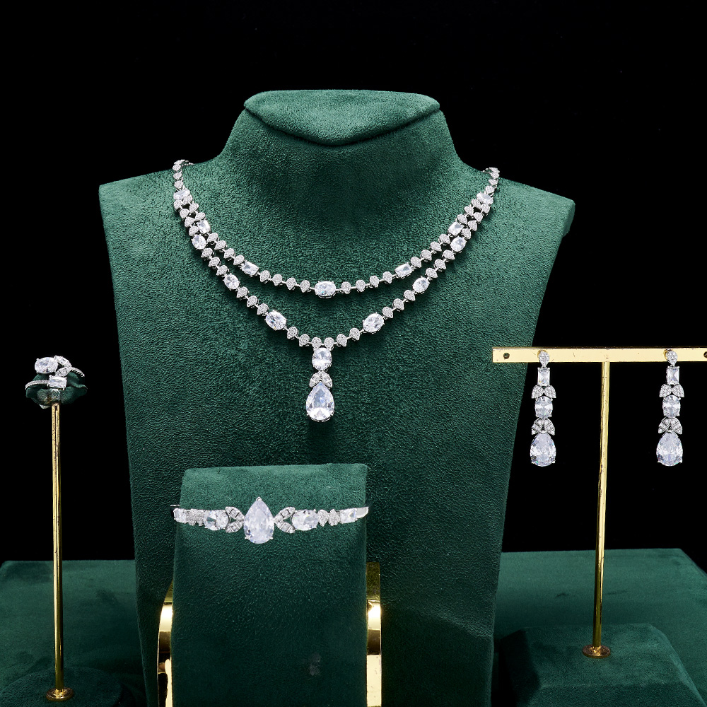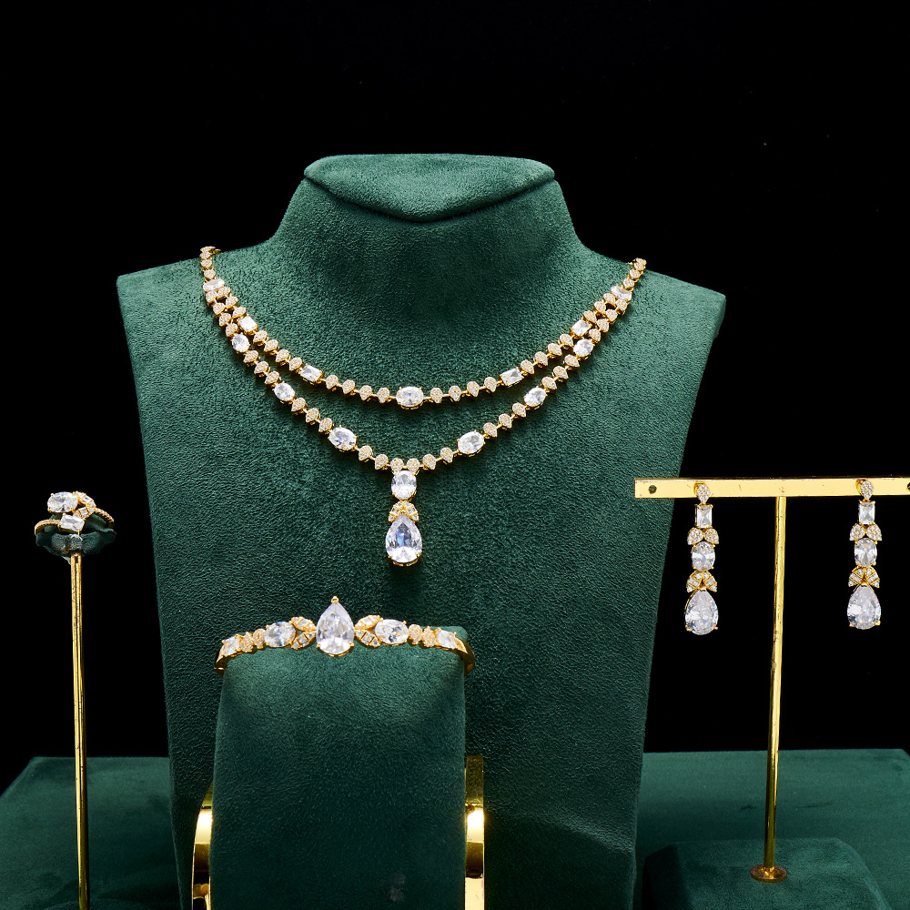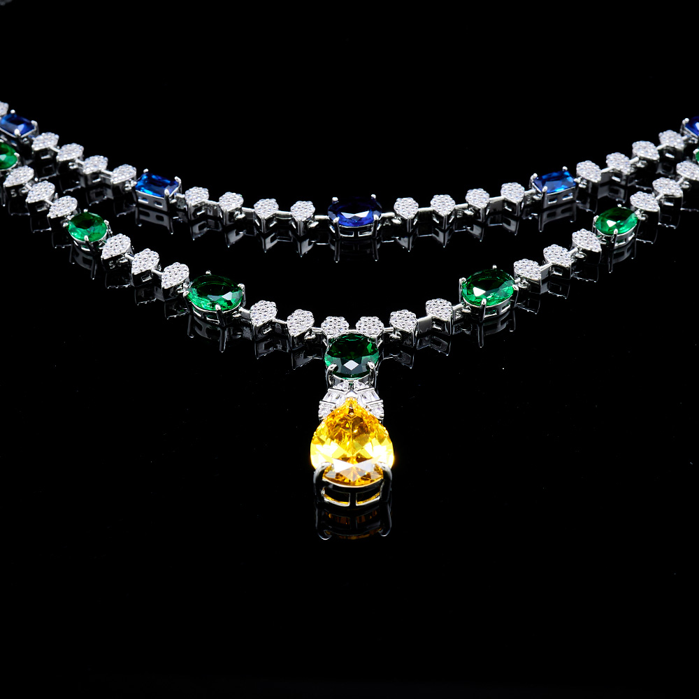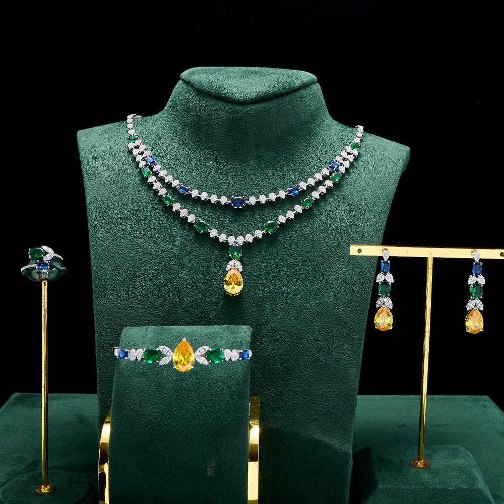 015176 Luxury Colorful Cubic Zircon Necklace Set For Women Fashion Cz Jewelry Sets Wedding Prom Party Jewellery Accessories