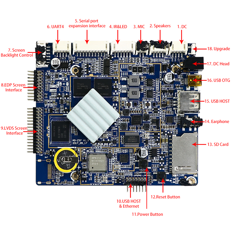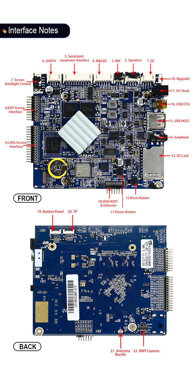 | 3 sets of serial ports. Support external serial device modules (3G module, NFC module, printer, card reader, etc.) |