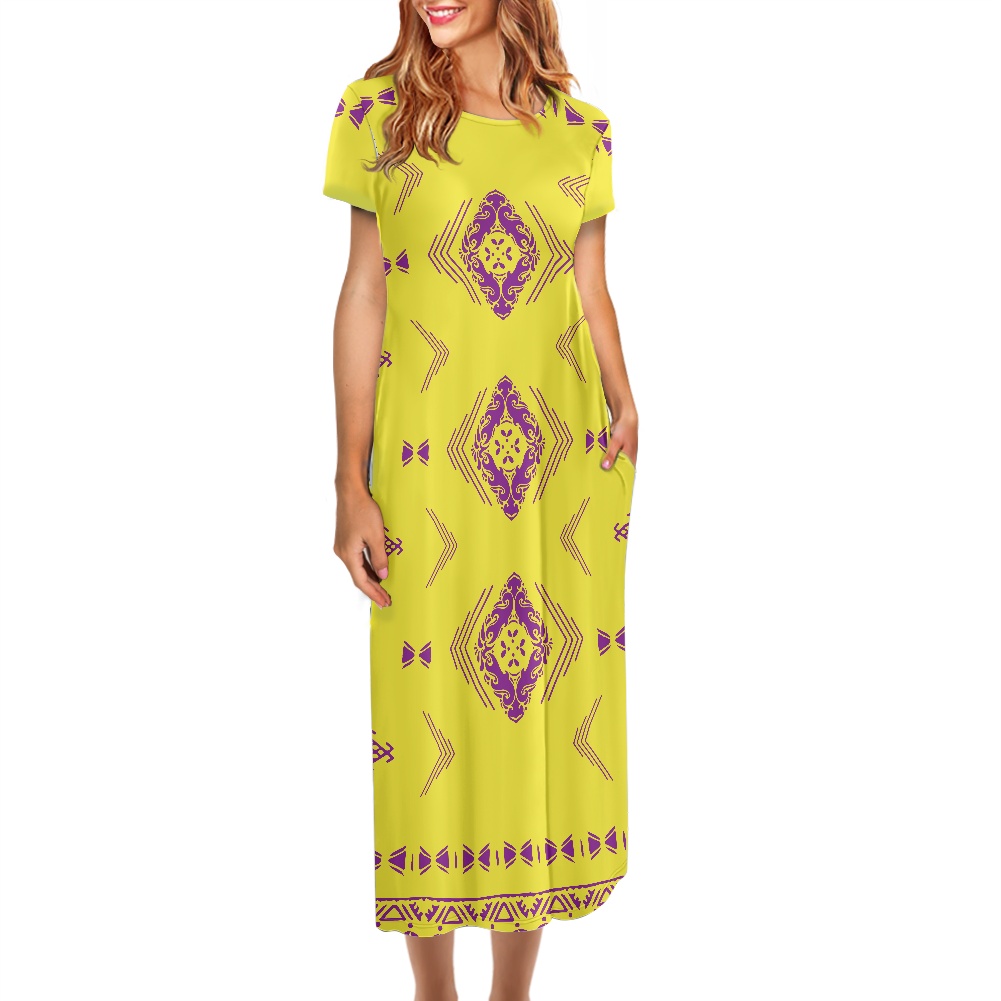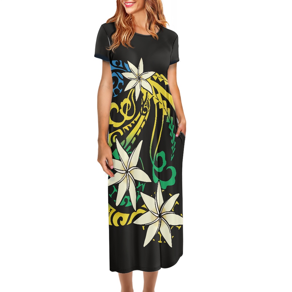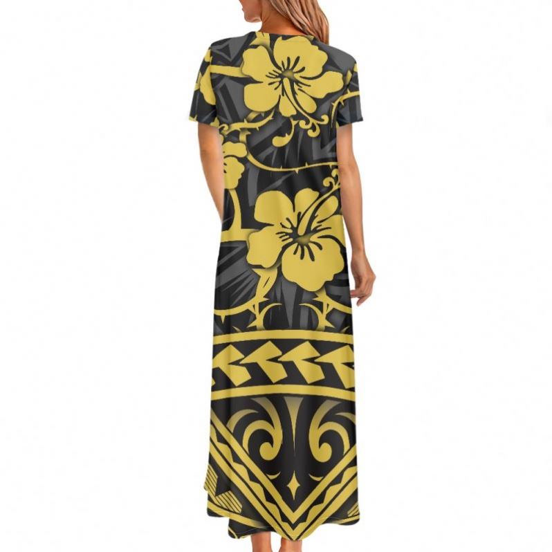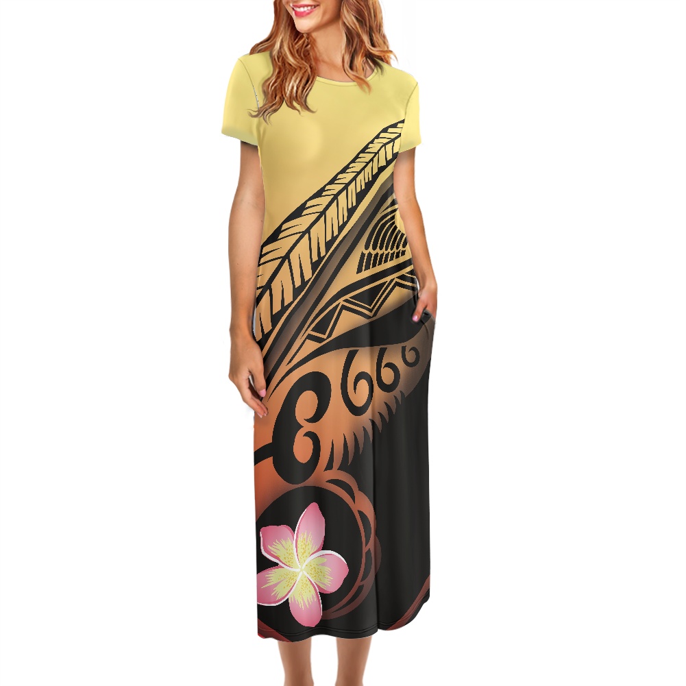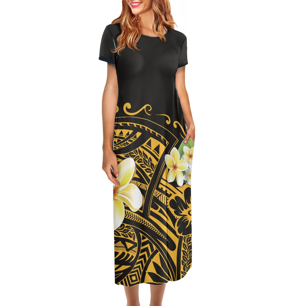 Custom Women's Short Sleeve Maxi Dress Casual Polynesian Tribal Designs Tshirt Long Dresses