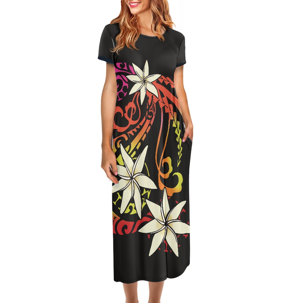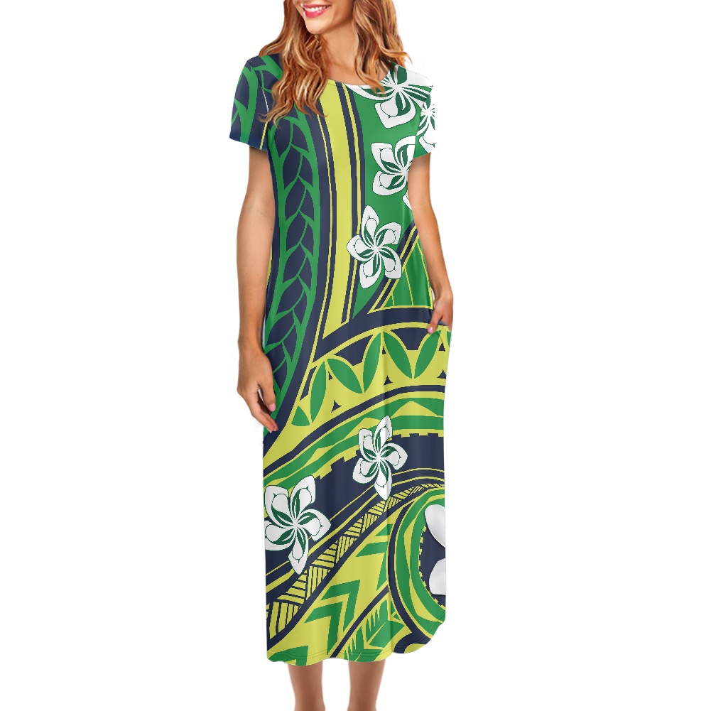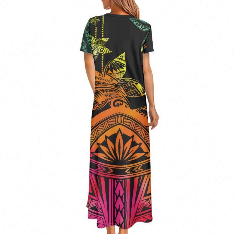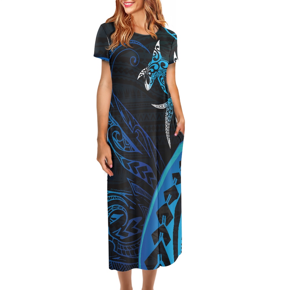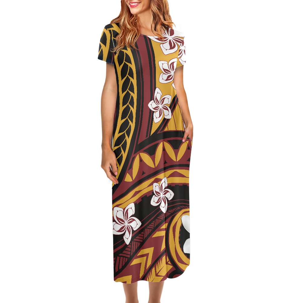 Custom Women's Short Sleeve Maxi Dress Casual Polynesian Tribal Designs Tshirt Long Dresses
