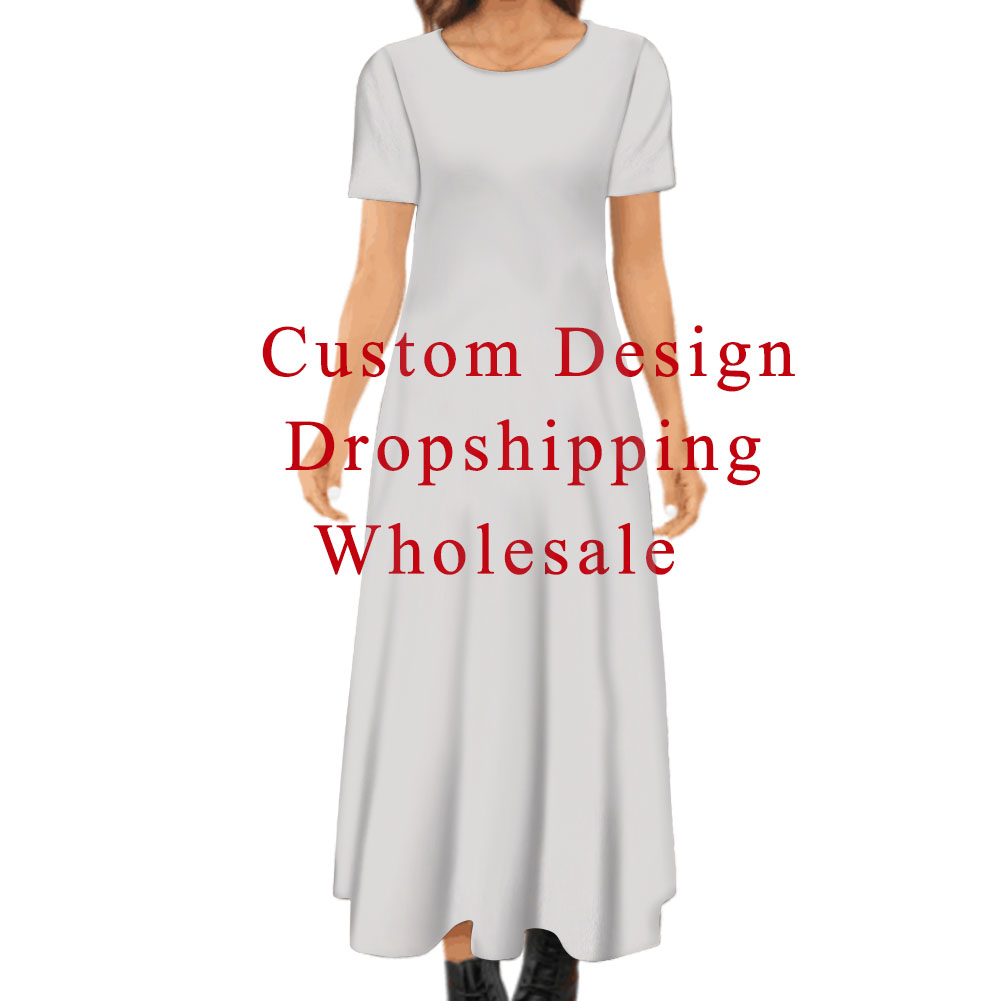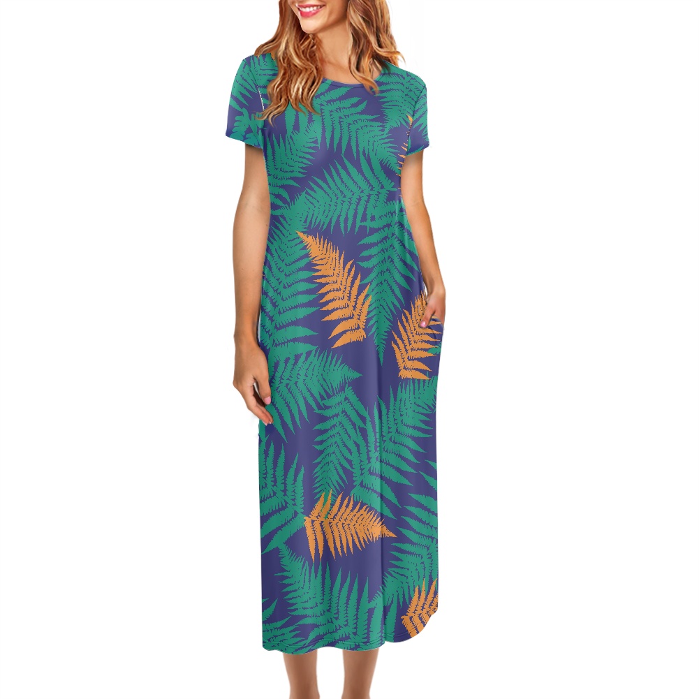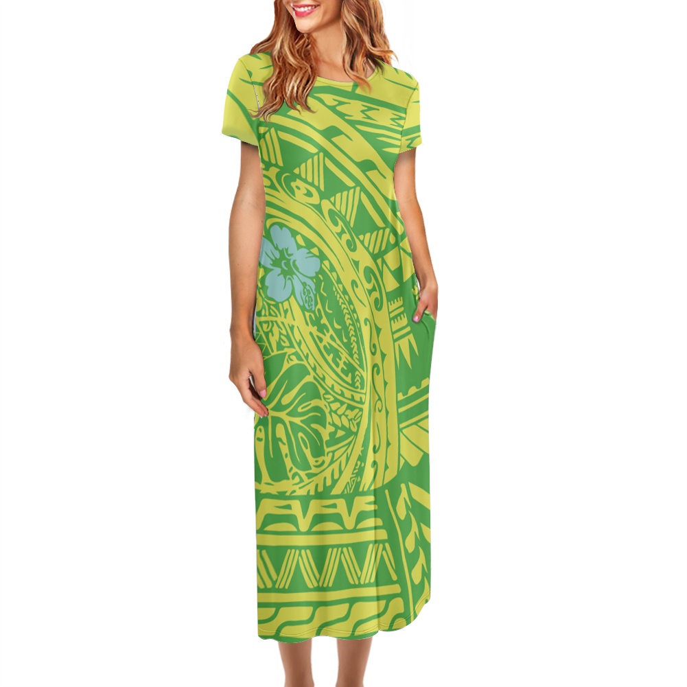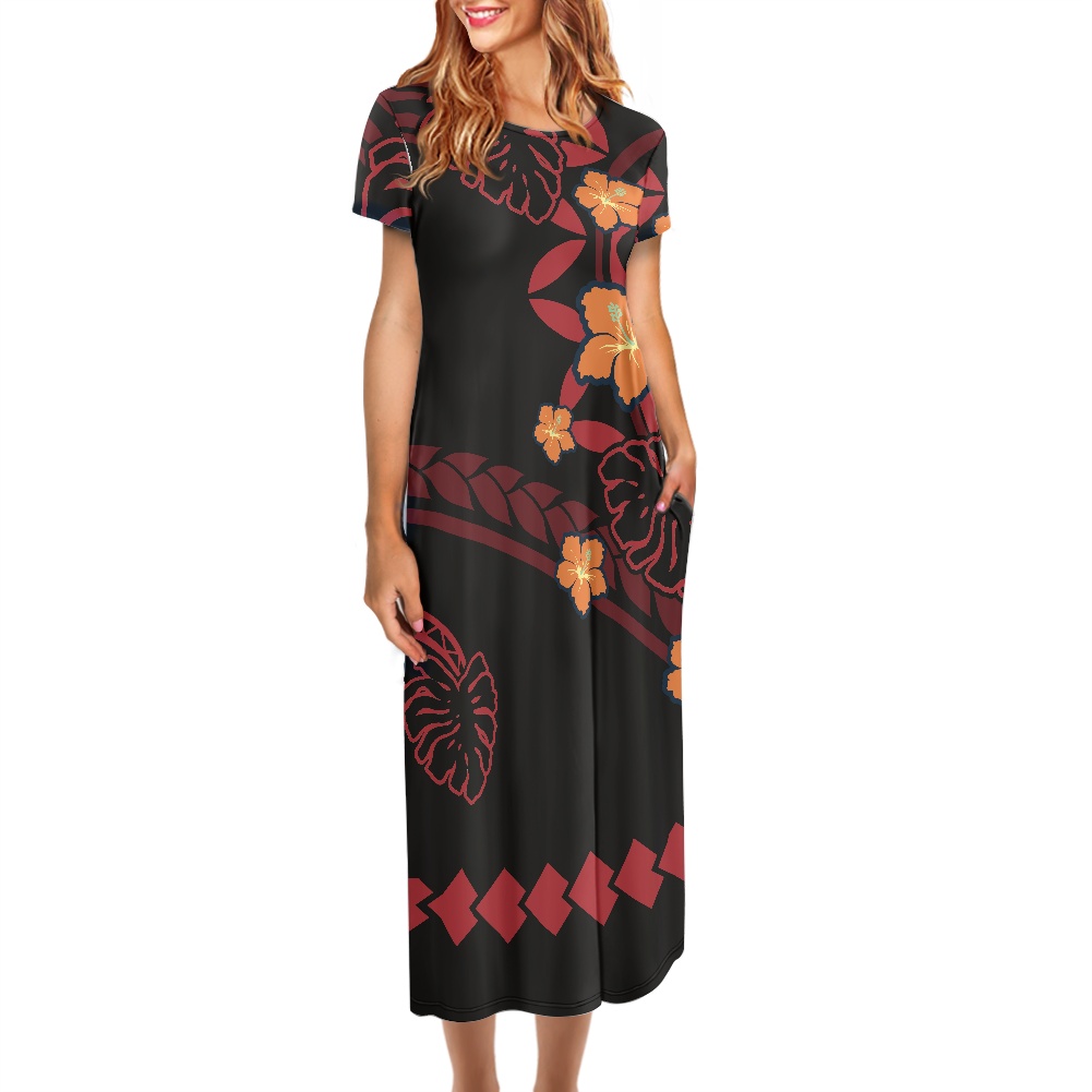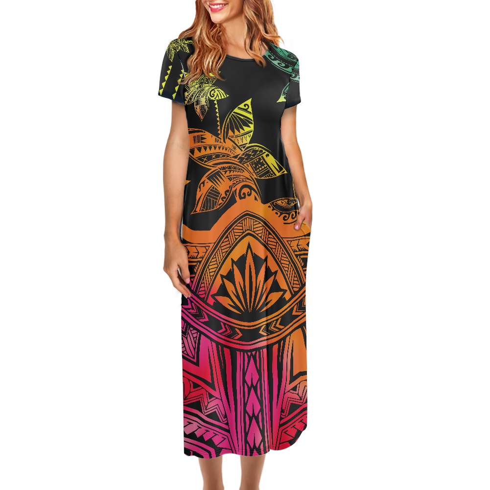 Custom Women's Short Sleeve Maxi Dress Casual Polynesian Tribal Designs Tshirt Long Dresses