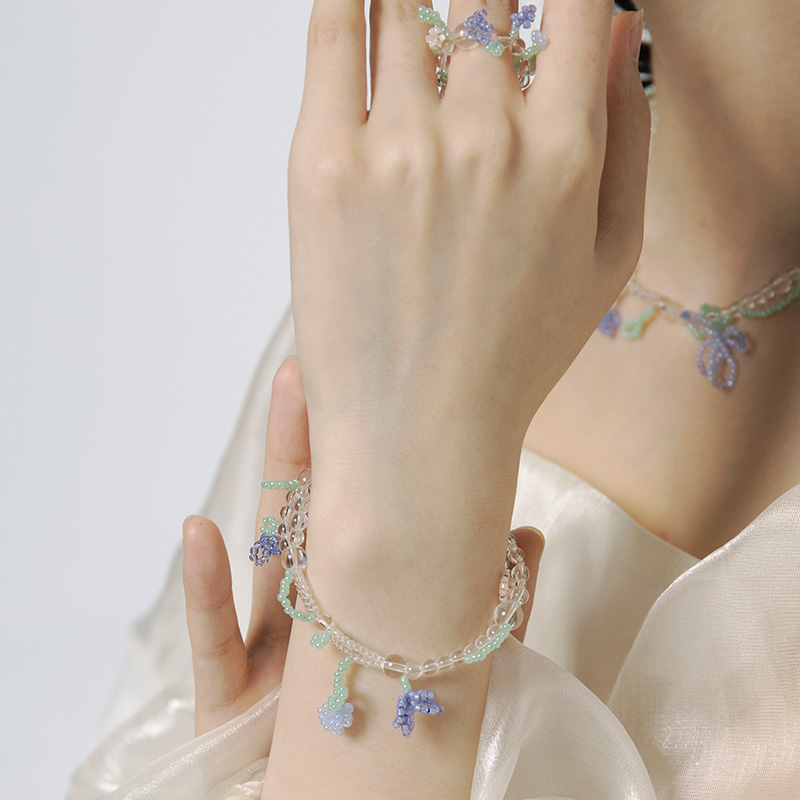 23cm Fine Fashion Jewelry Flower Blossom White Crystal Beading Bracelet