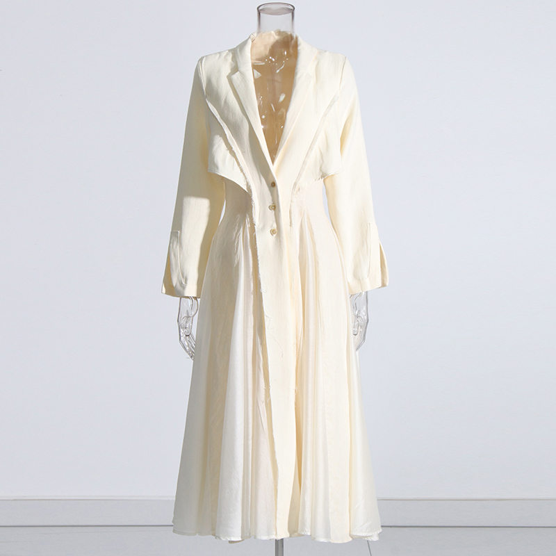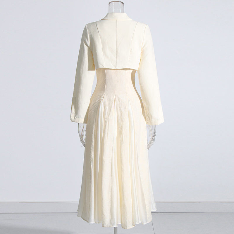 Twotwinstyle Minimalist Dresses For Women V Neck Long Sleeve High Waist Elegant Dress 2022