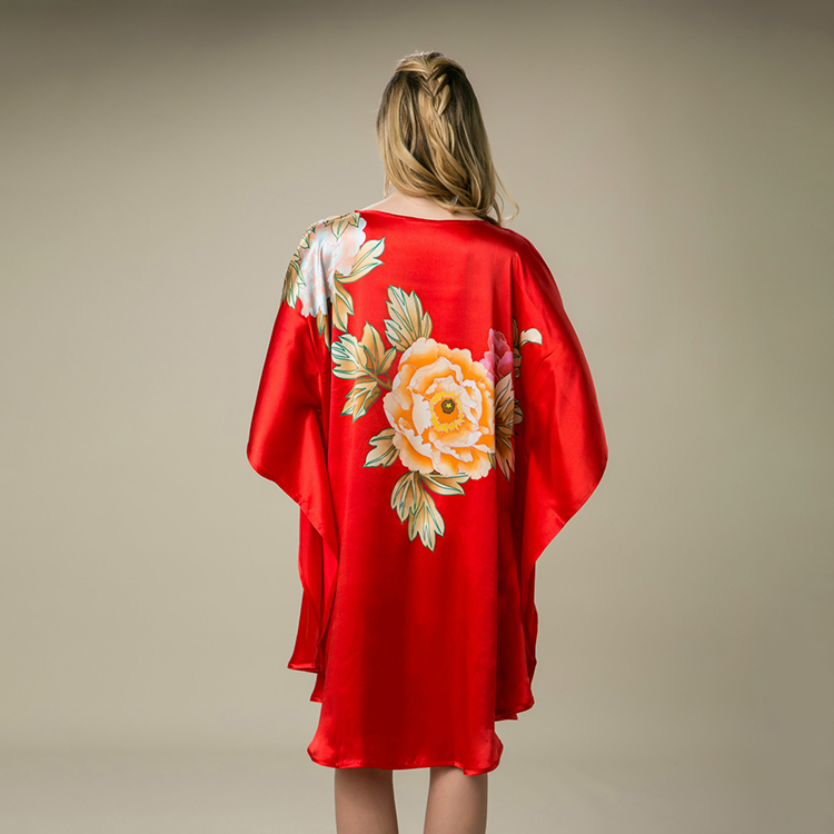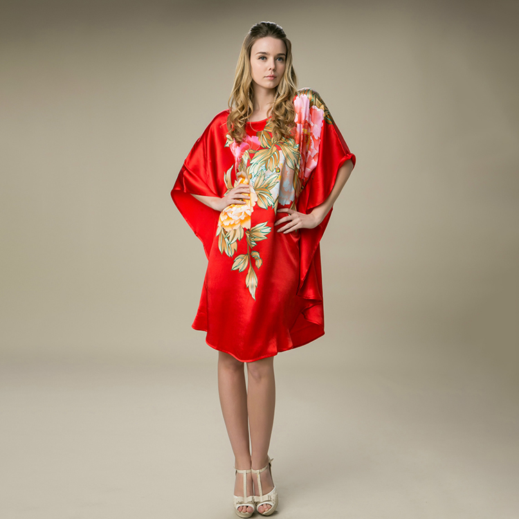 Product name | Women's home wear new silk clothing red print sleepwear tshirt night dress short sleeve pajamas nightgown |