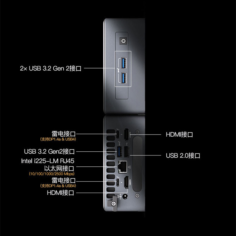 USB Configuration | Front: 2x USB 3.2 Rear: 2x USB 4 (type C), 1x USB 3.2, 1x USB 2.0 Internal: 1x USB 3.2 on m.2 22x42 (pins), 2x USB 2.0 (headers) |