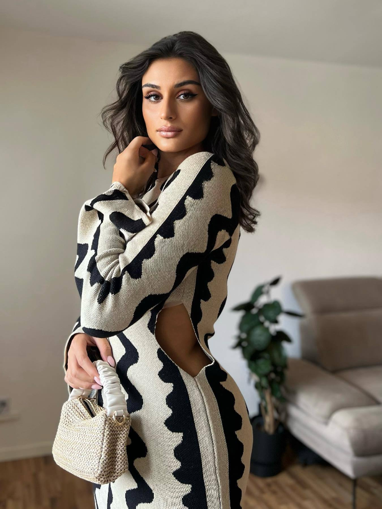 Autumn Knitted Maxi Dress Flare Long Sleeve Bodycon Dress For Women Elegant Sexy Cut Out Wave Christmas Party Evening Outfits