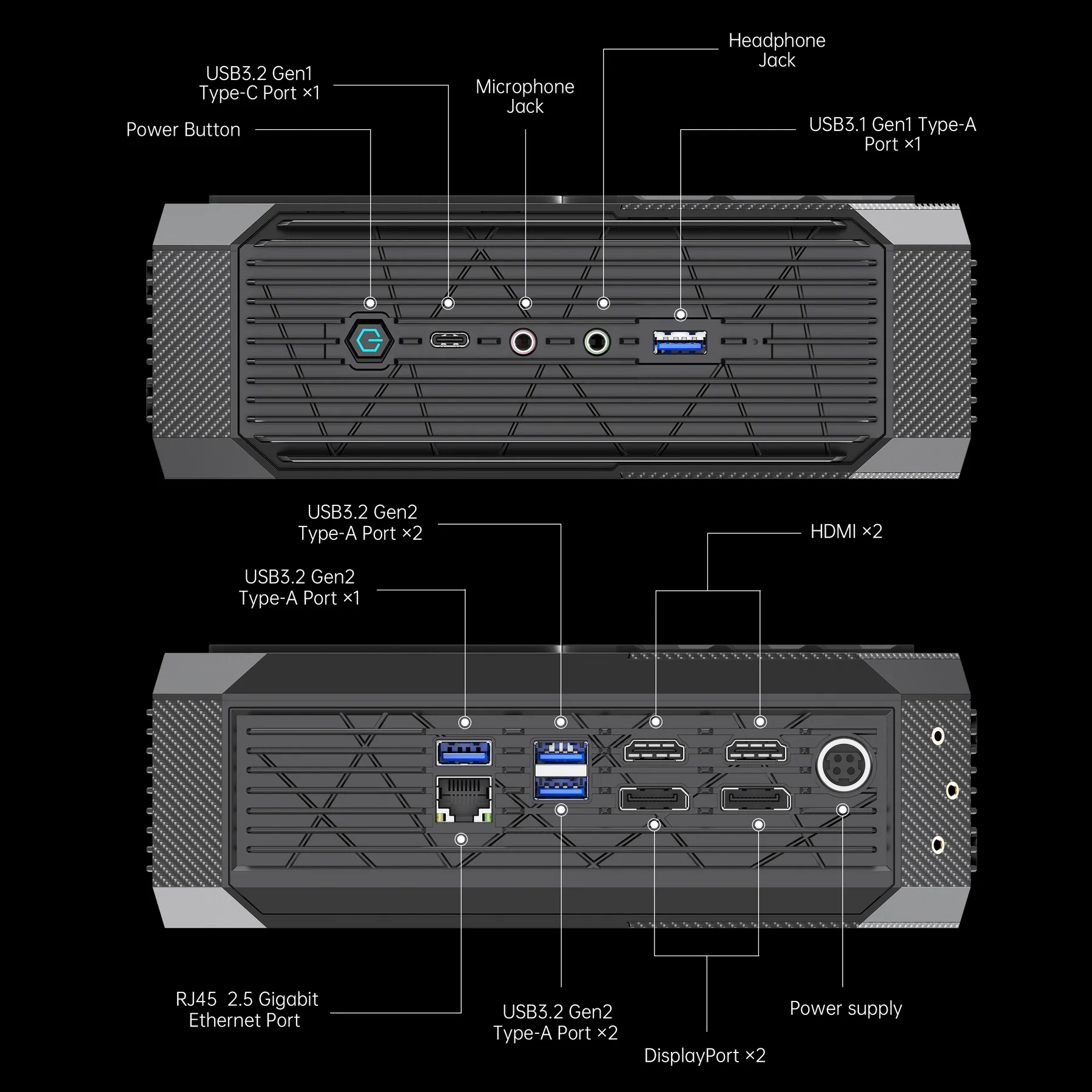 With a simple operation to gain access to the internals to upgrade the SO-DIMM memory or M.2 PCIe SSD. This mini game PC provides two SODIMM Slots for DDR4 Dual channel, and two M.2 2280 PCIe SSD Slots supporting NGFF SATA or NVMe PCIe3.0. User can upgrade the RAM and hard drive for higher data transfer speed and better data processing.
