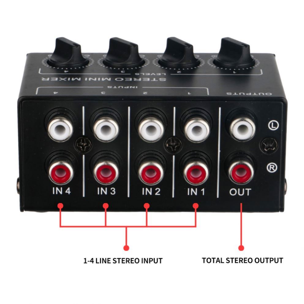 Packing list | 1X miniature stereo four-channel passive mixer |