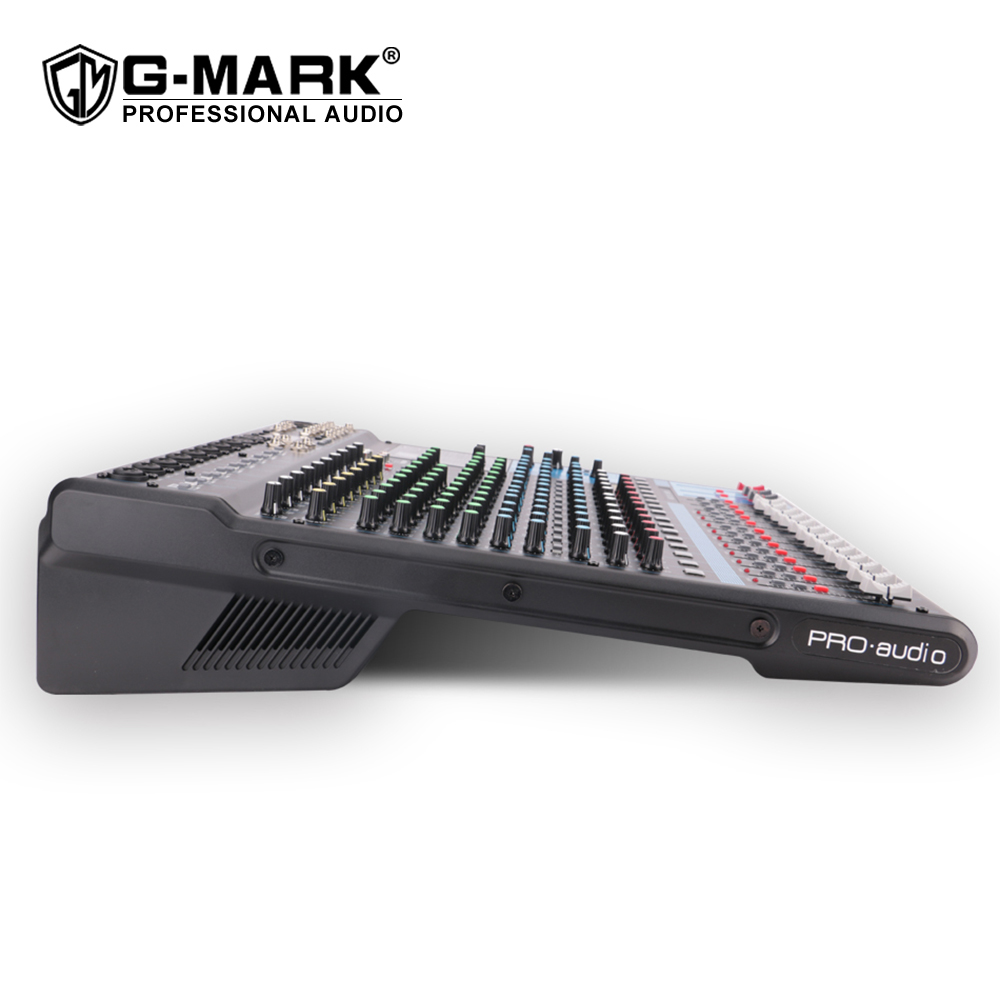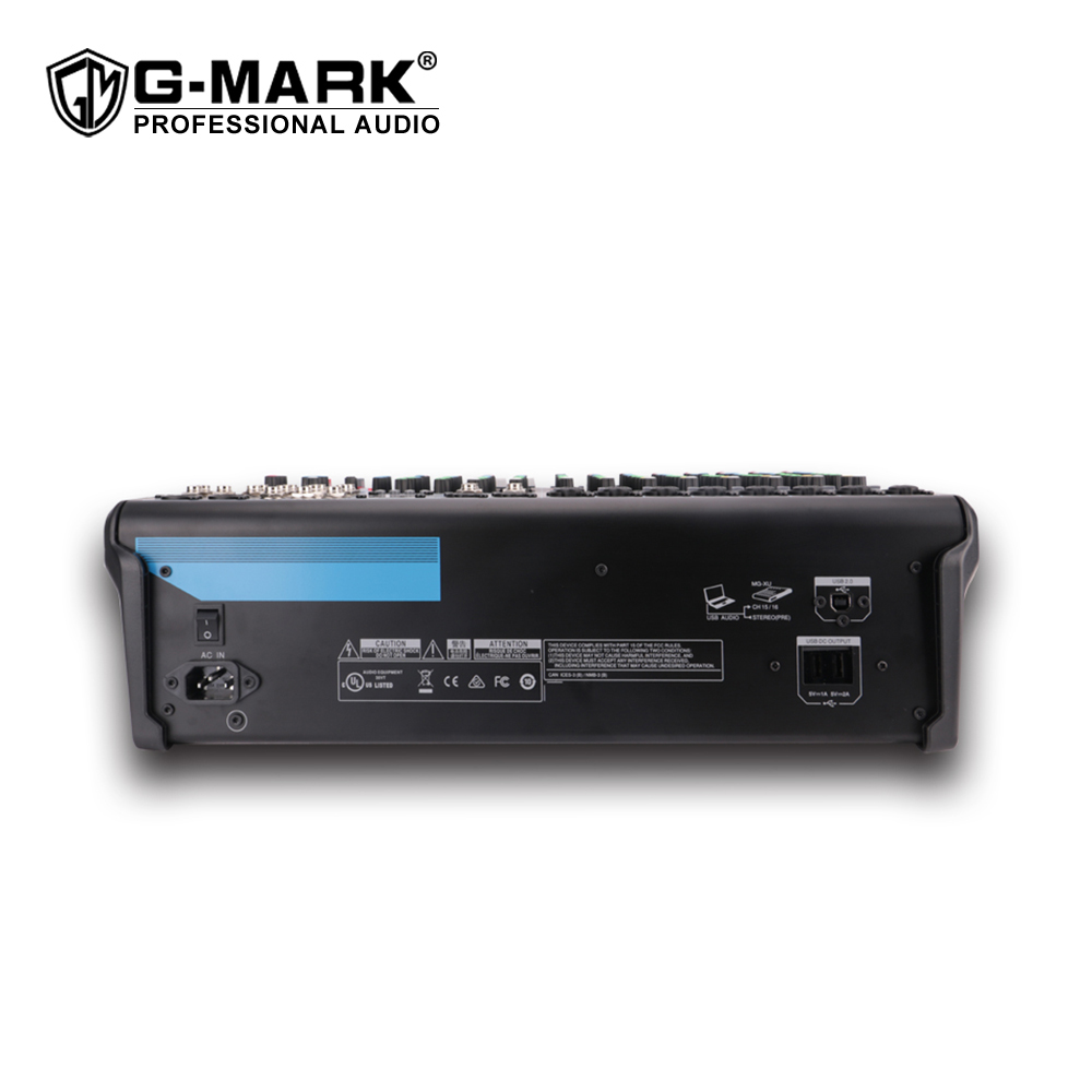 The G-MARK MG16MP3 has an intuitive usb mixer audio interface, easy-to-use operator interface for a wide range of users and purposes. Its rugged construction and flexible design make it possible to create sound with high performance, good sound quality and stability in applications such as installation, recording and live performances. Its a full-featured digital blue tooth mixing console.