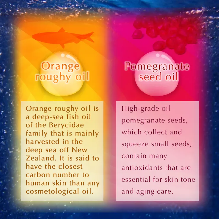 Moisturizing <orange roughy oil>, protection component <Inura (dog Rakurisu Moi de extract)>, blended <Shiite Star Wort (Astel Mali Chima extract)>, nutrition component <Sea lavender (remote chloride gel Peri extract)>.