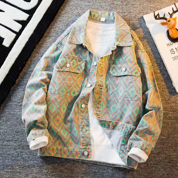Products Name | 2022 Winter Men's Light weight Jackets cowboy jacket printed casual wear long-sleeved shirt coat male button men's jackets |