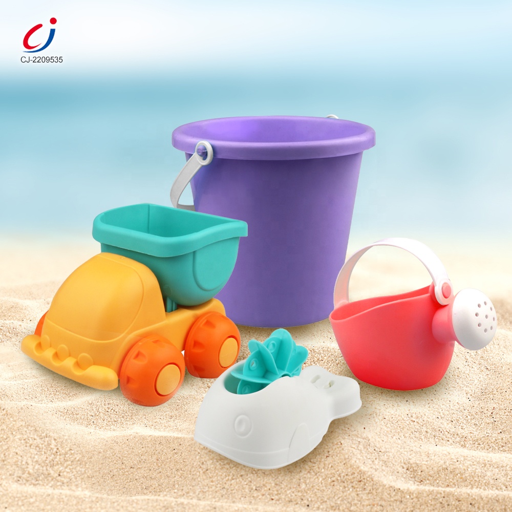Chengji eco friendly summer outdoor sand playing tool set plastic cart beach truck car toy for kids