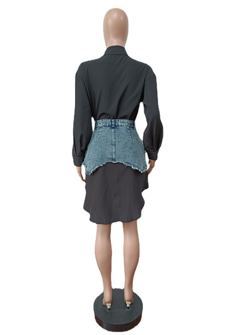 2023 Women Shirt Dresses With Demin Skirt 2 Piece Set Plus Size Clothing Spring Ladies Casual Short Dress | ||||||||