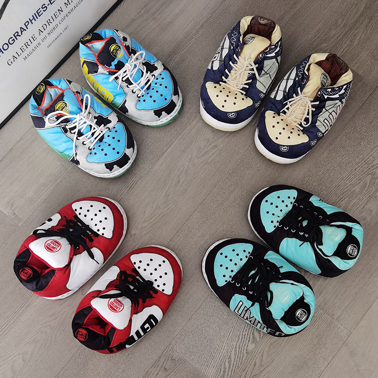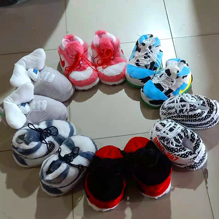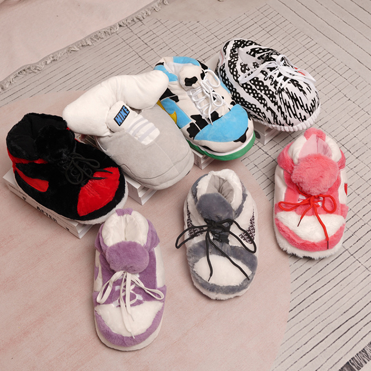 Wholesale Yeezy Fly Man AJ Plush Slippers Women Winter Pvc Cotton Shoes House Sneaker Plush Slides in stock