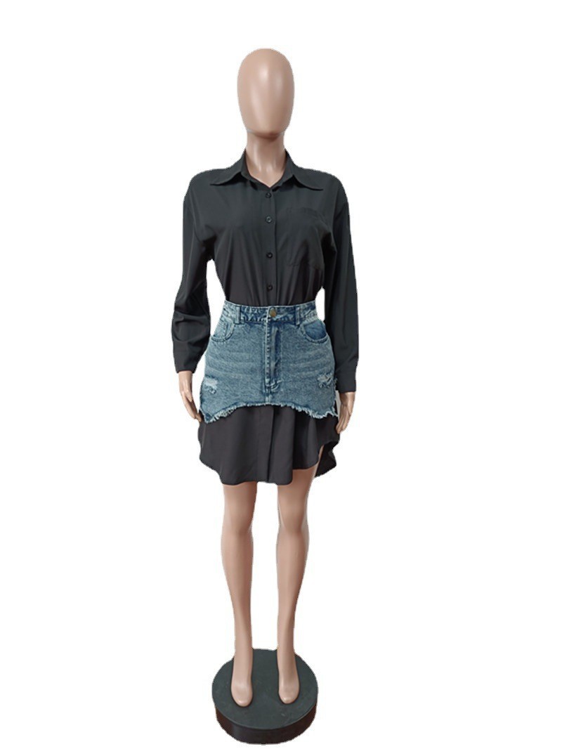 2023 New Trendy Spring Women's Fashion Dresses Blouse Shirt And Denim Skirt Two Piece Dress Matching Sets Streetwear Dress