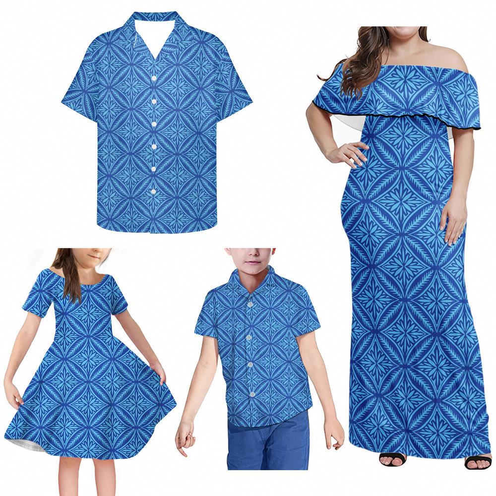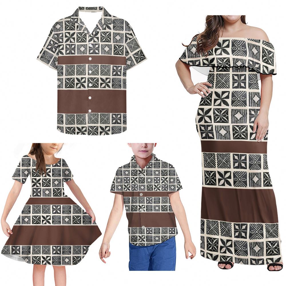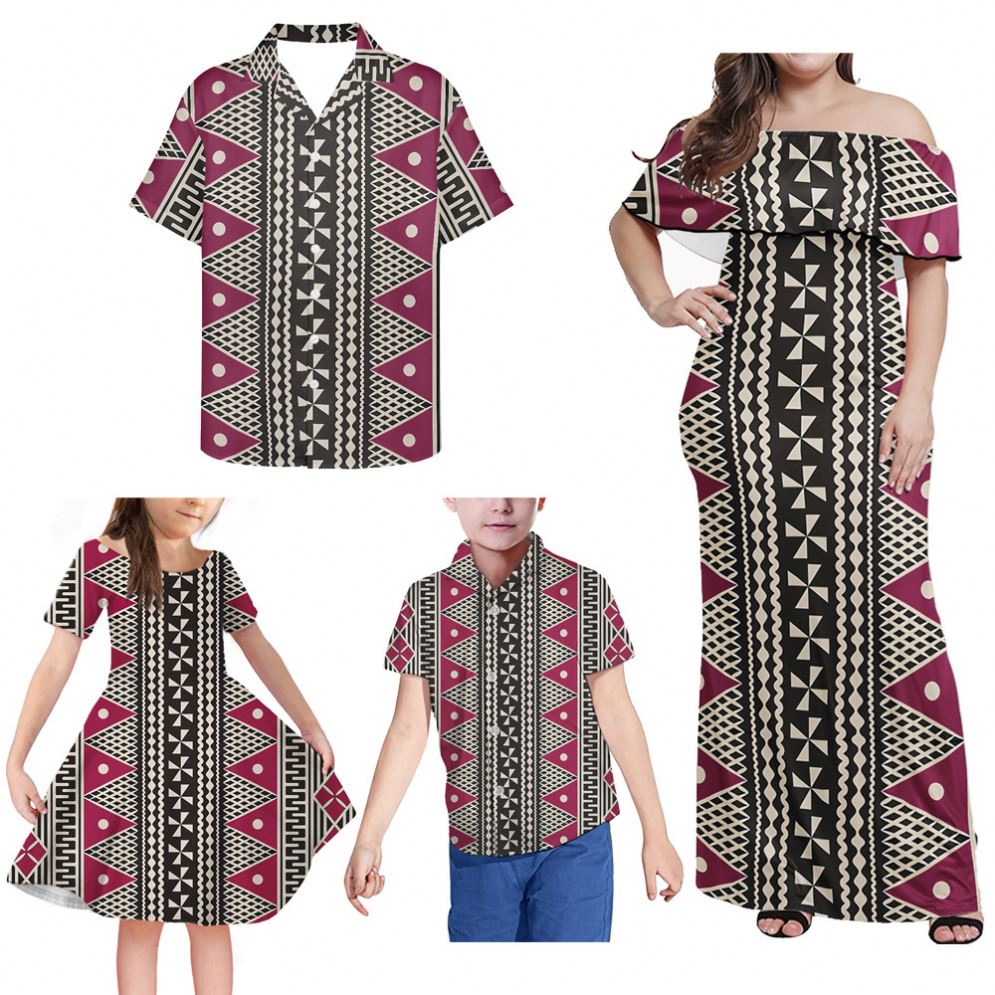 Plus Size Women Bodycon Off Shoulder Dress Custom Polynesian Samoan Tribal Tapa Floral Design Family Matching Outfits Summer