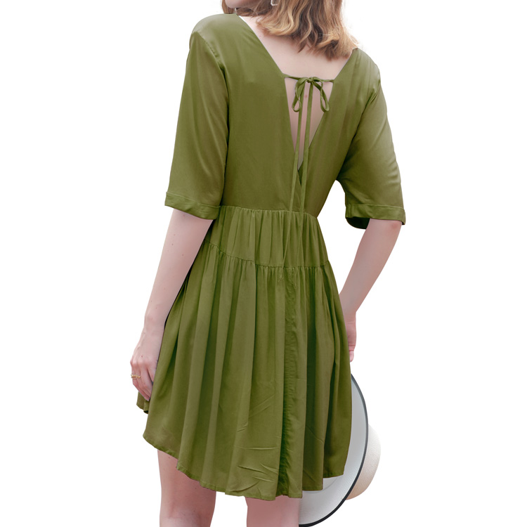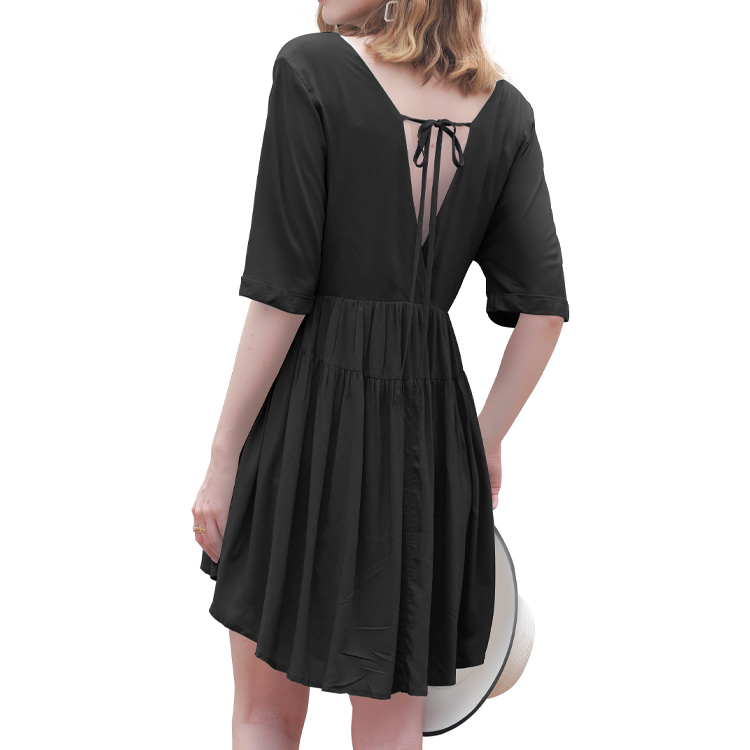 * Deep v neck and backless design add charm to this elegant short sleeve dress,making you sexy and sweet.