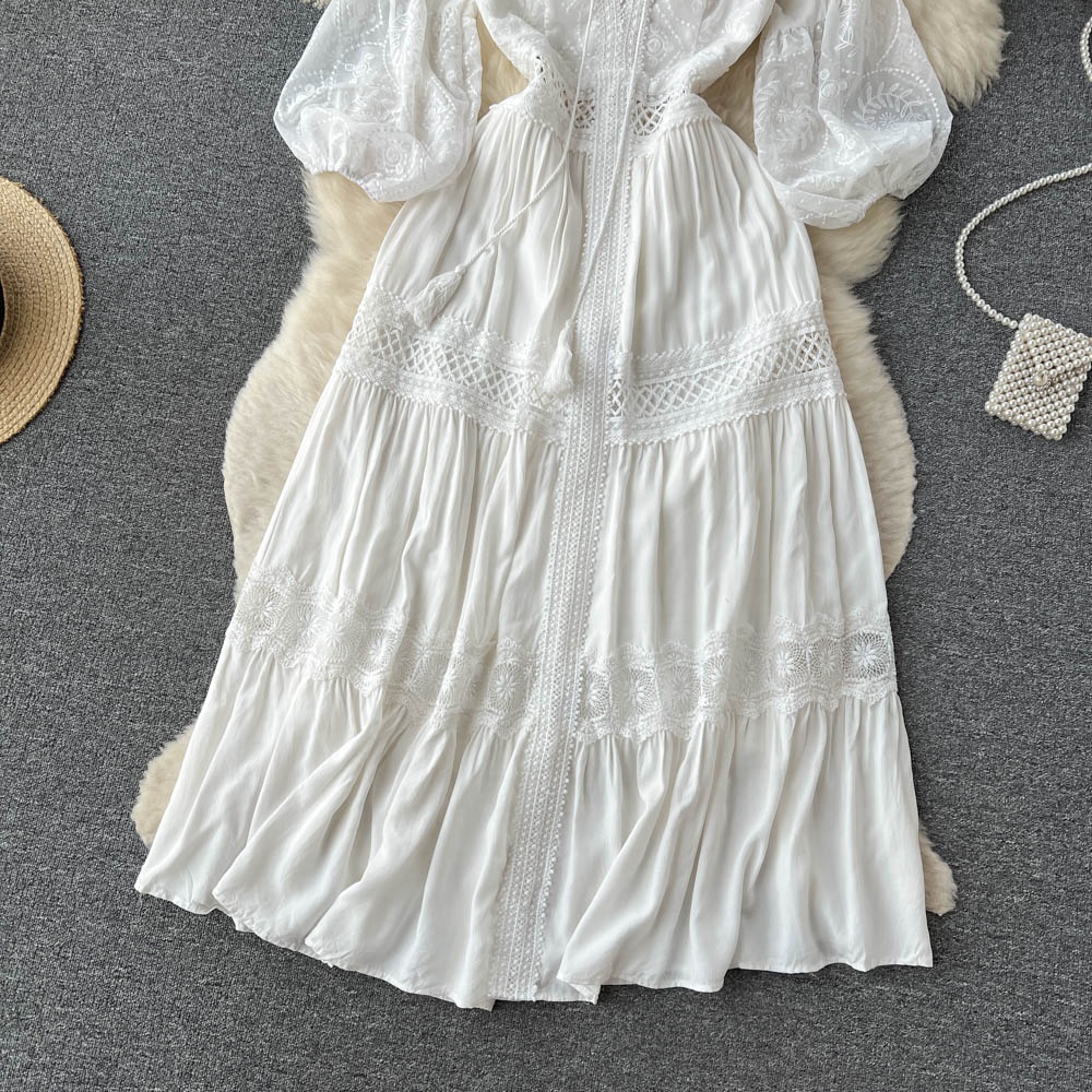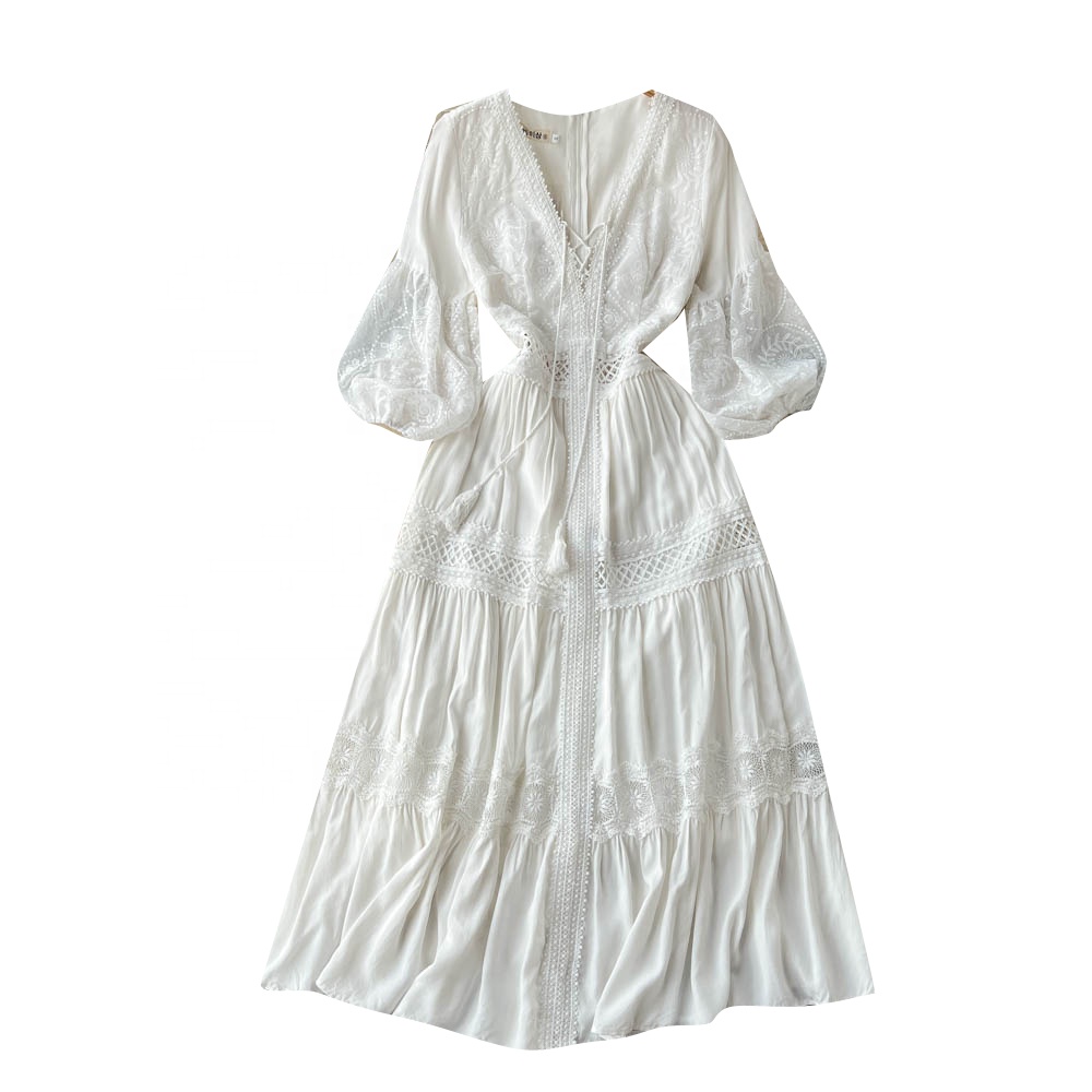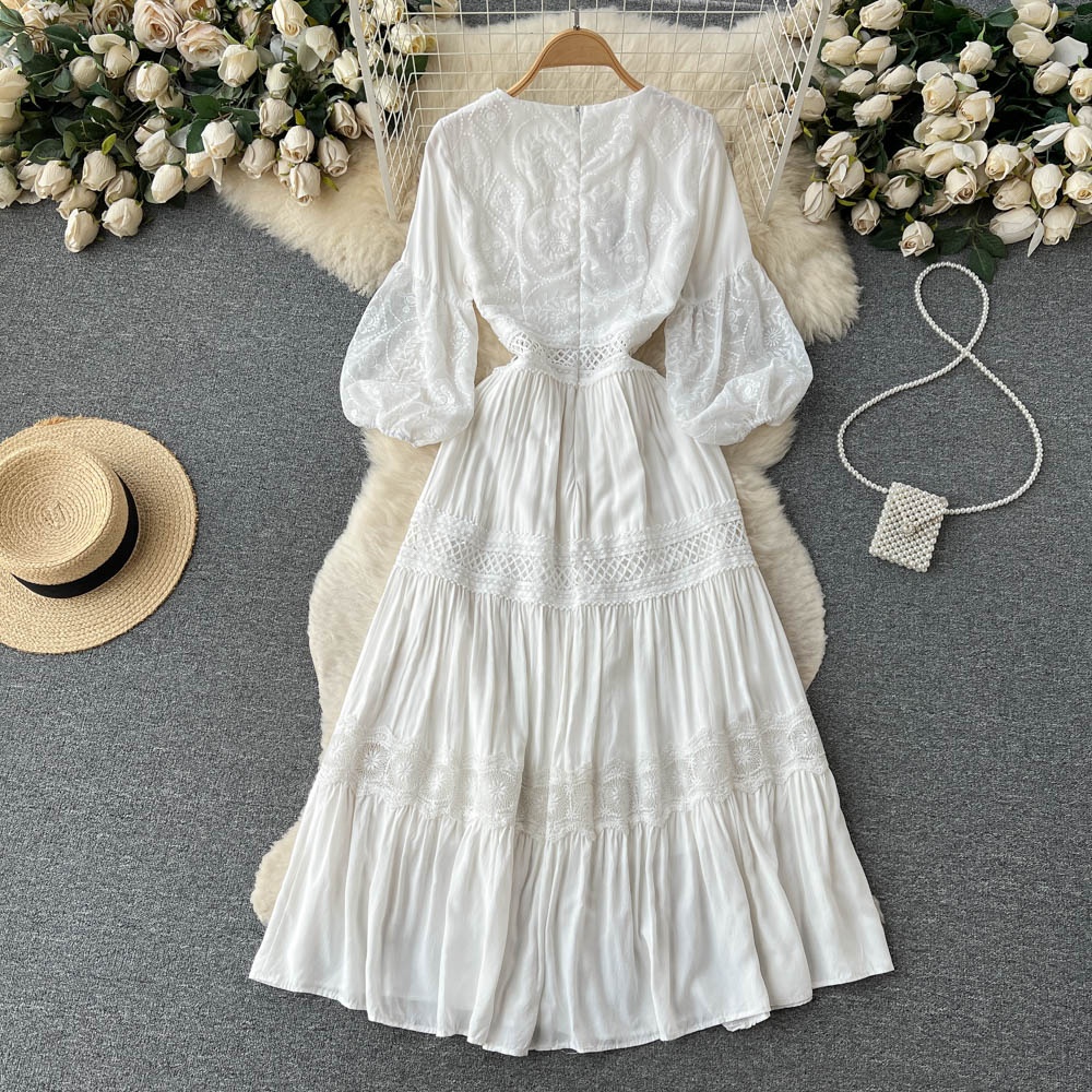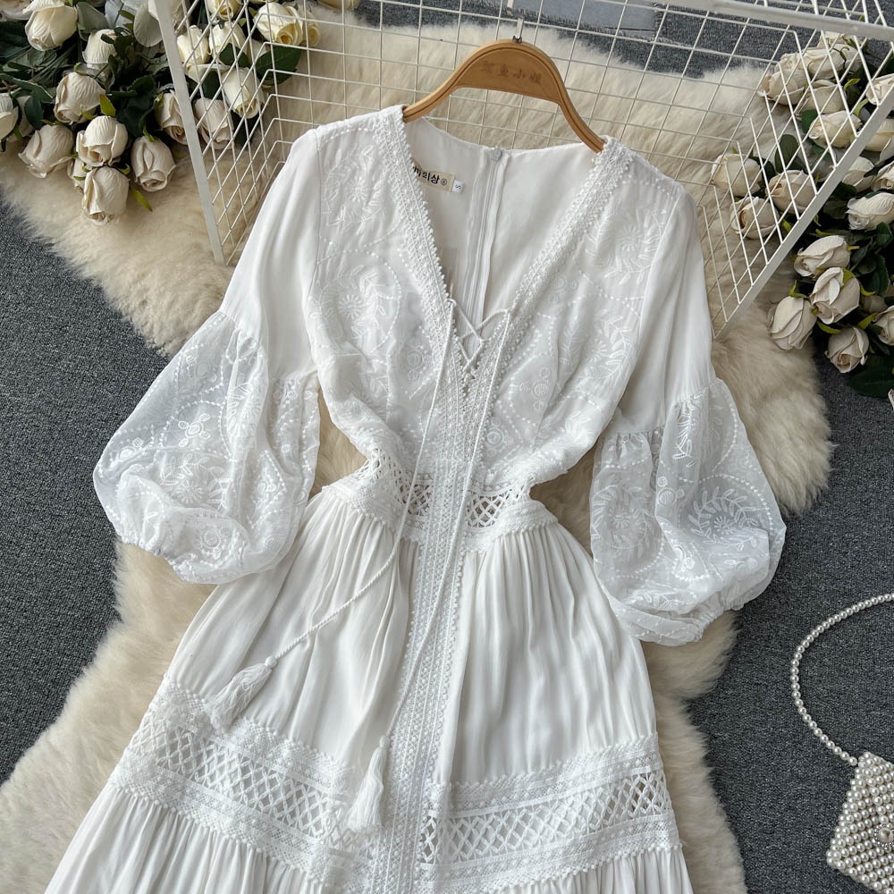 2023 New Spring And Summer V-neck French Gentle Holiday Women's Dress Embroidered Long Skirt