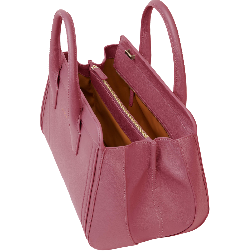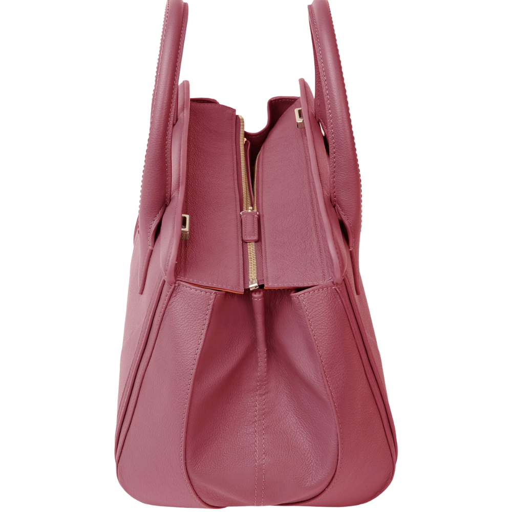 Women's Luxury Tote Bag Handcrafted in Cherry Purple Calfskin Entirely Designed and 100% Made in Italy