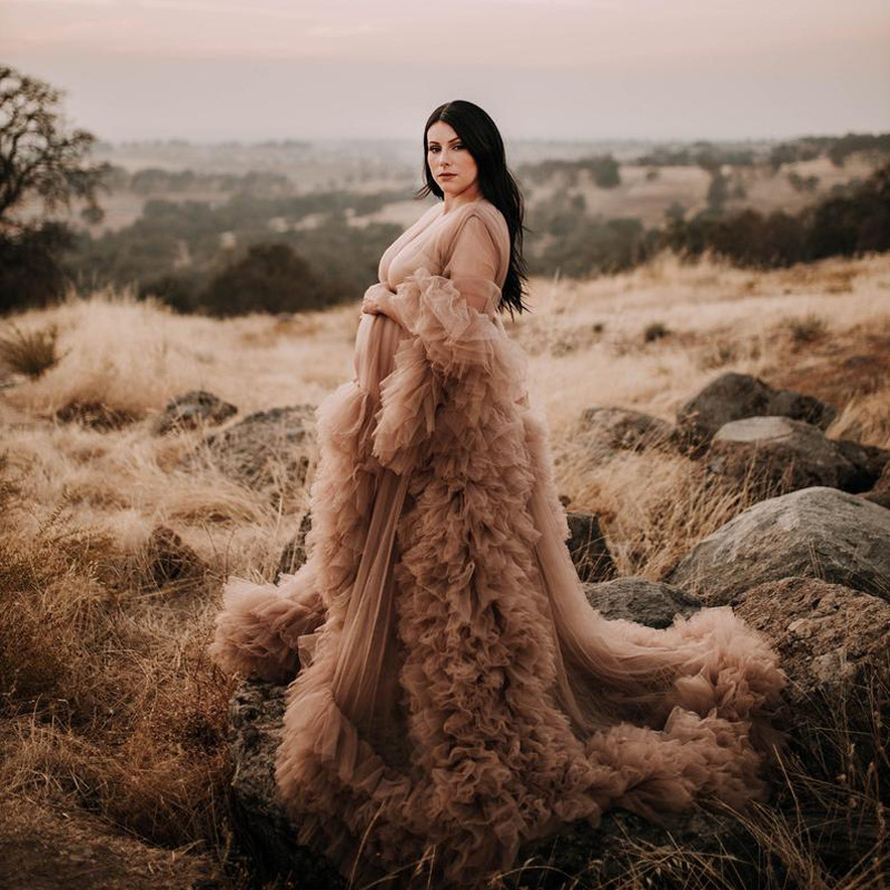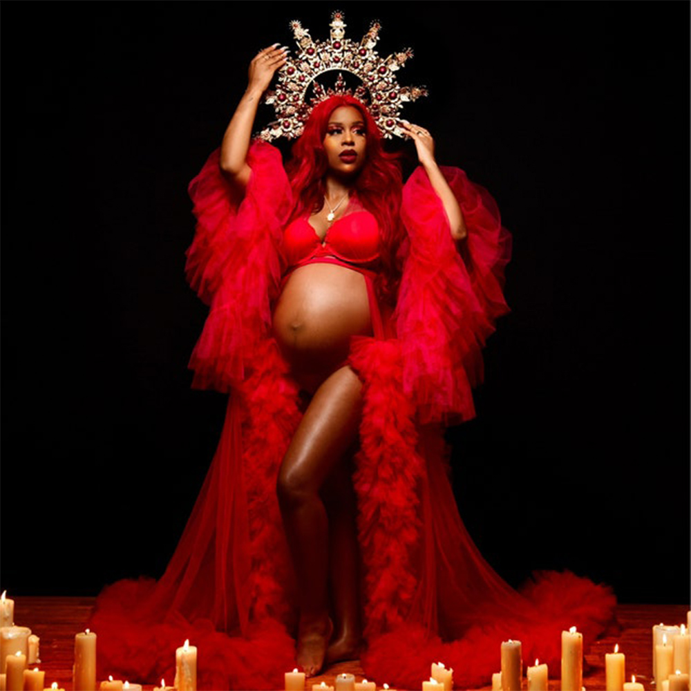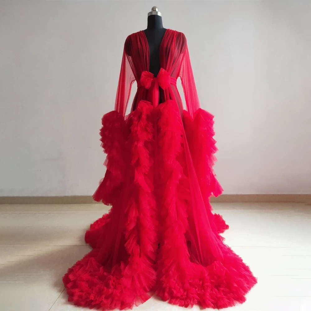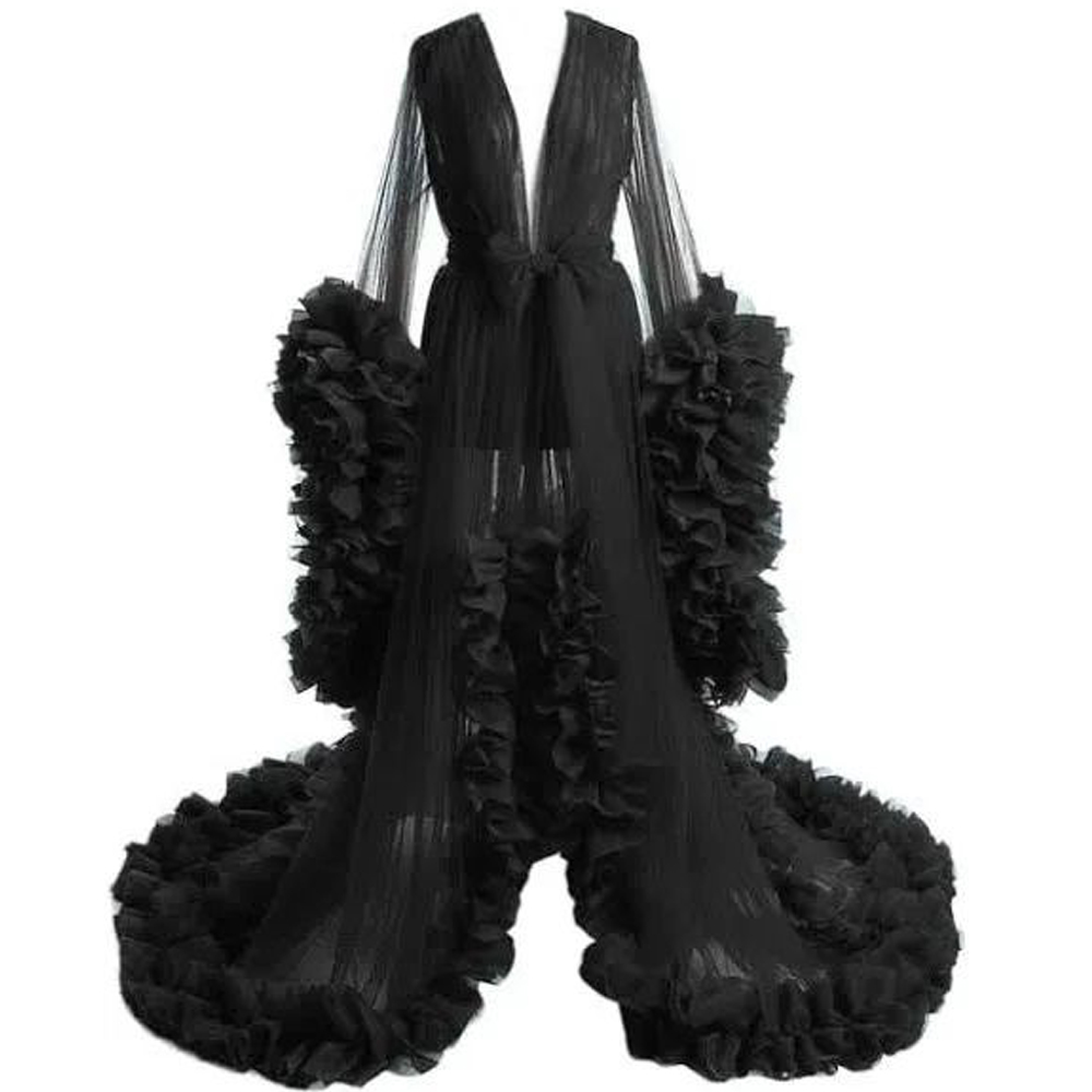 Women's Dressing Gown Perspective Sheer Long Tulle Robe Puffy Pregnancy Maternity Dress for Baby Shower Nightgown Sleepwear