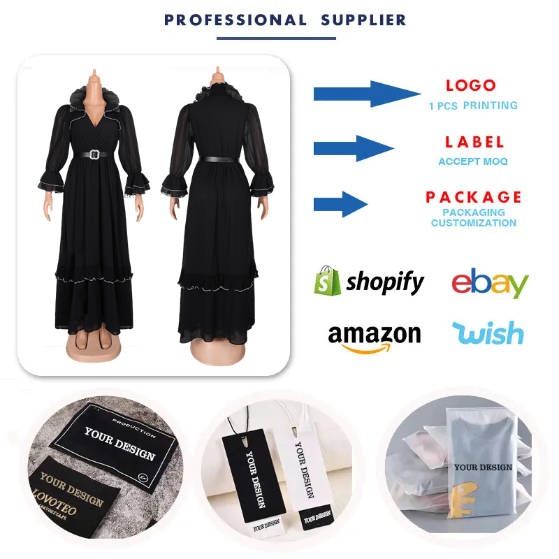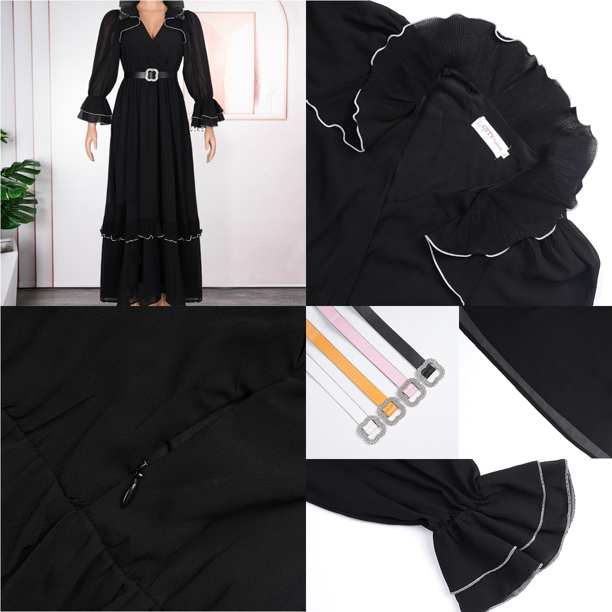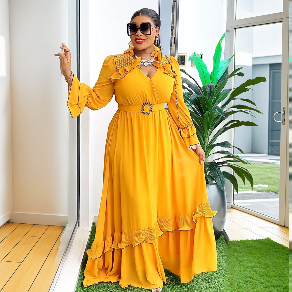 S10158 Trendy African Dresses for Women Clothing Long Sleeve Ruffle Chiffon Party Dresses Women Plus Size Church Dress