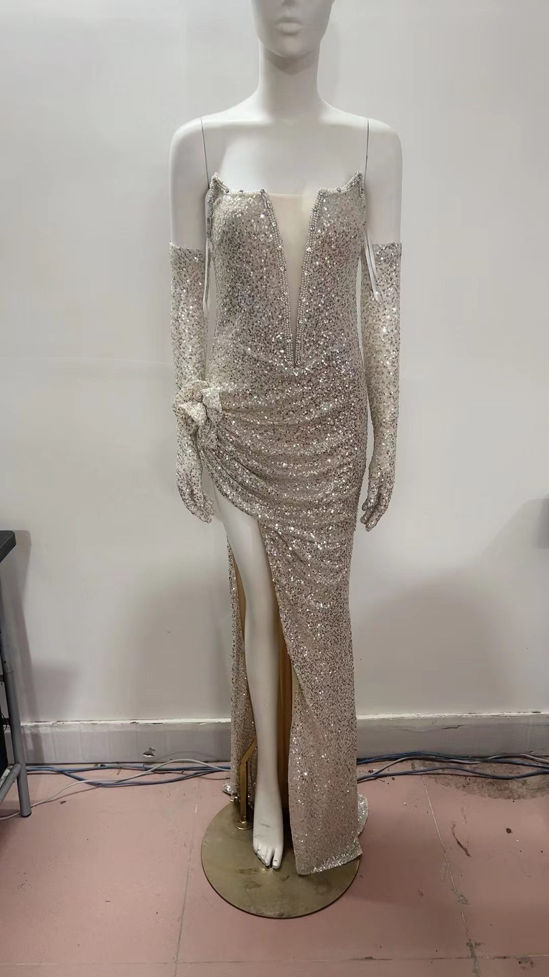Ladies High-end Luxury Maxi Beading Dress Sequined Party Dresses for Women