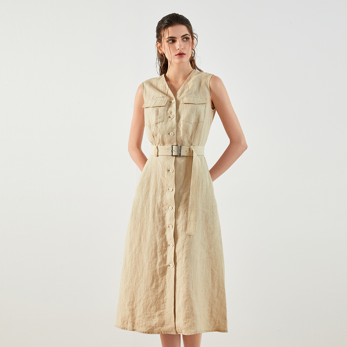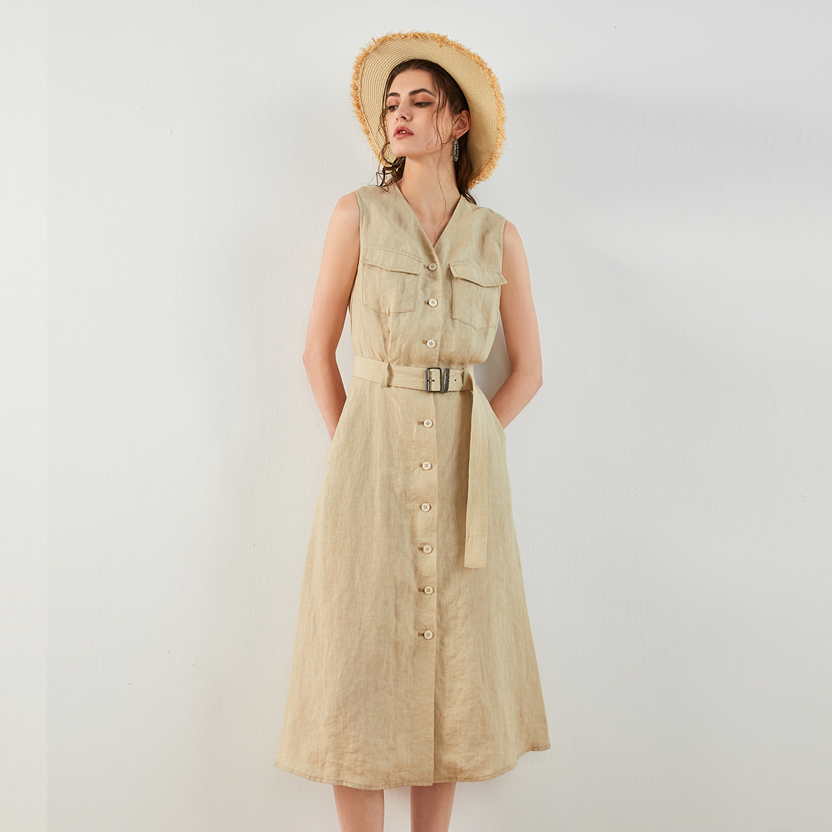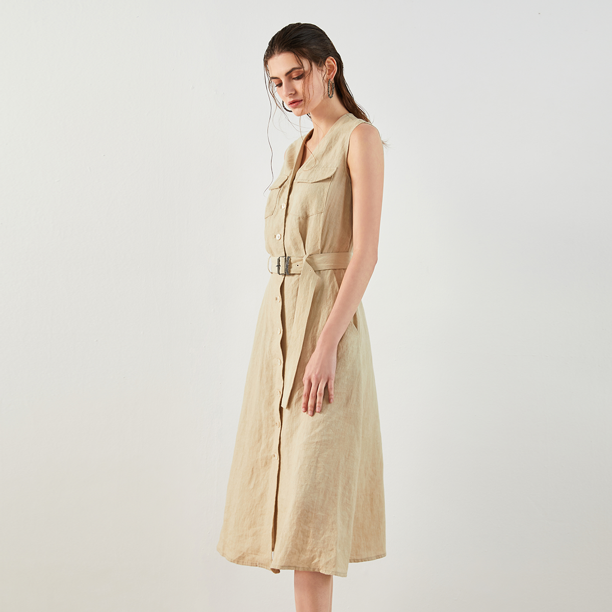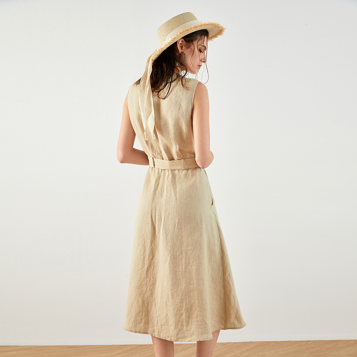 Luxury Women's Clothing Boutique Clothes Ladies Dresses Premium 100% Ramie Long Dress Supplier for Women