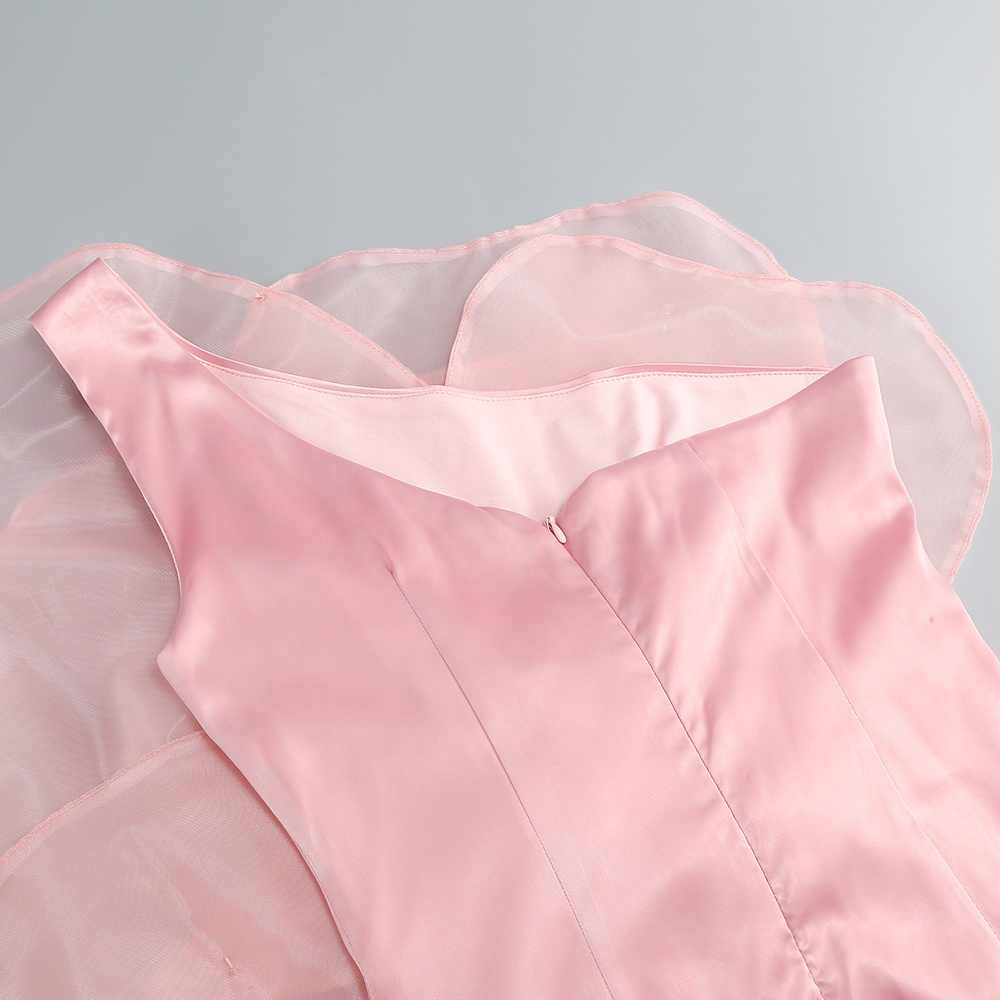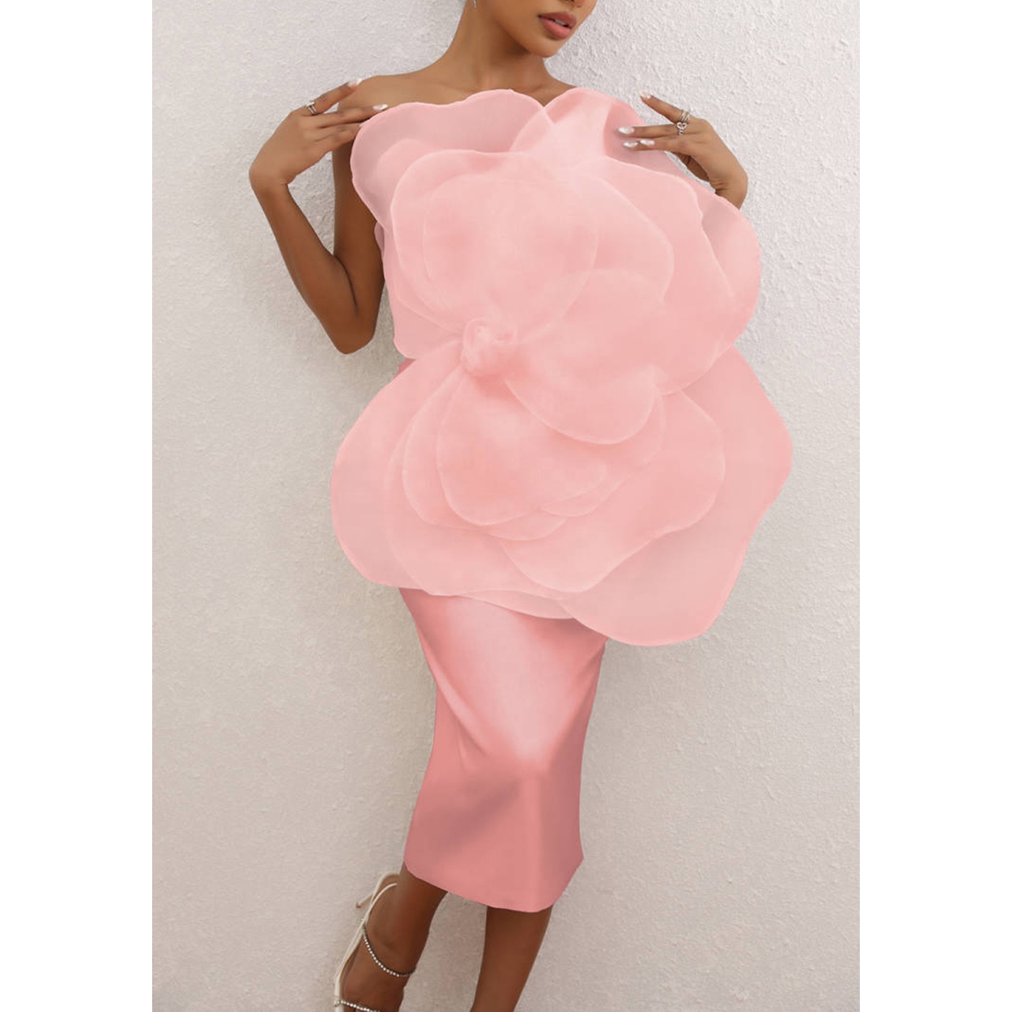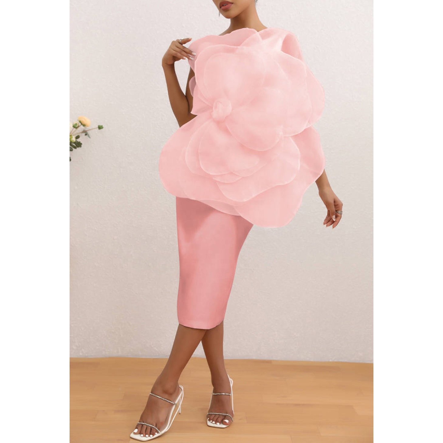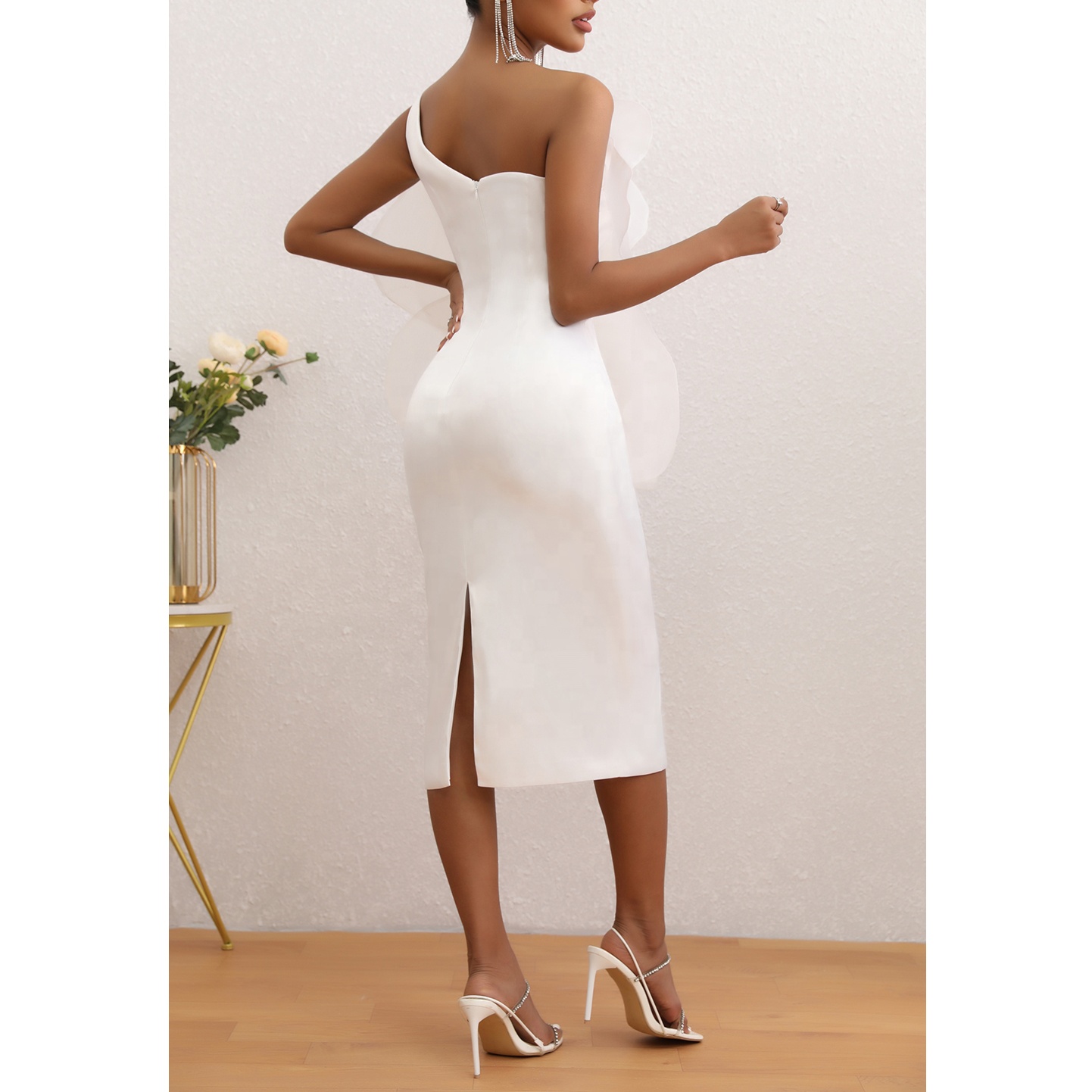 High Quality Fashion Women'S Sexy One Shoulder Sleeveless Backless White 3D Floral Midi Dress Birthday Party Celebration Dress
