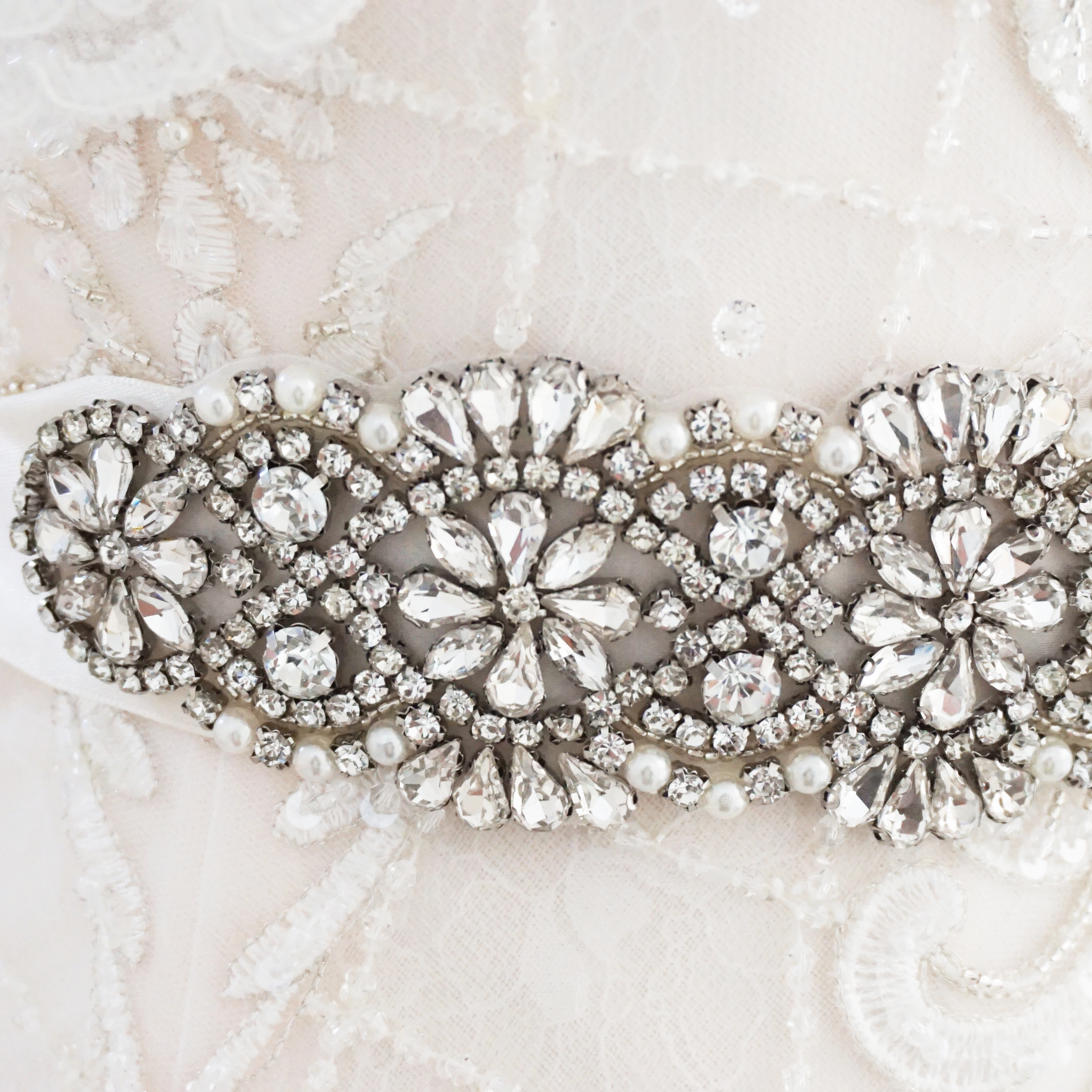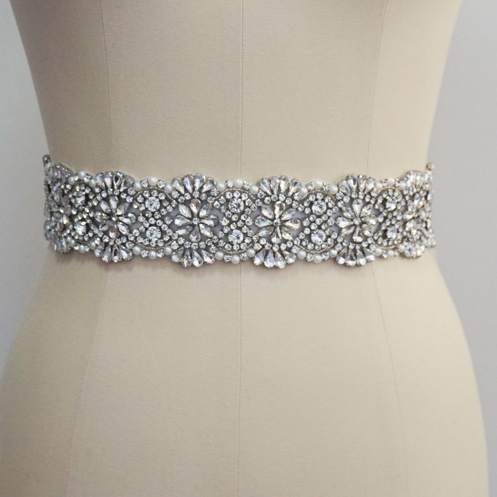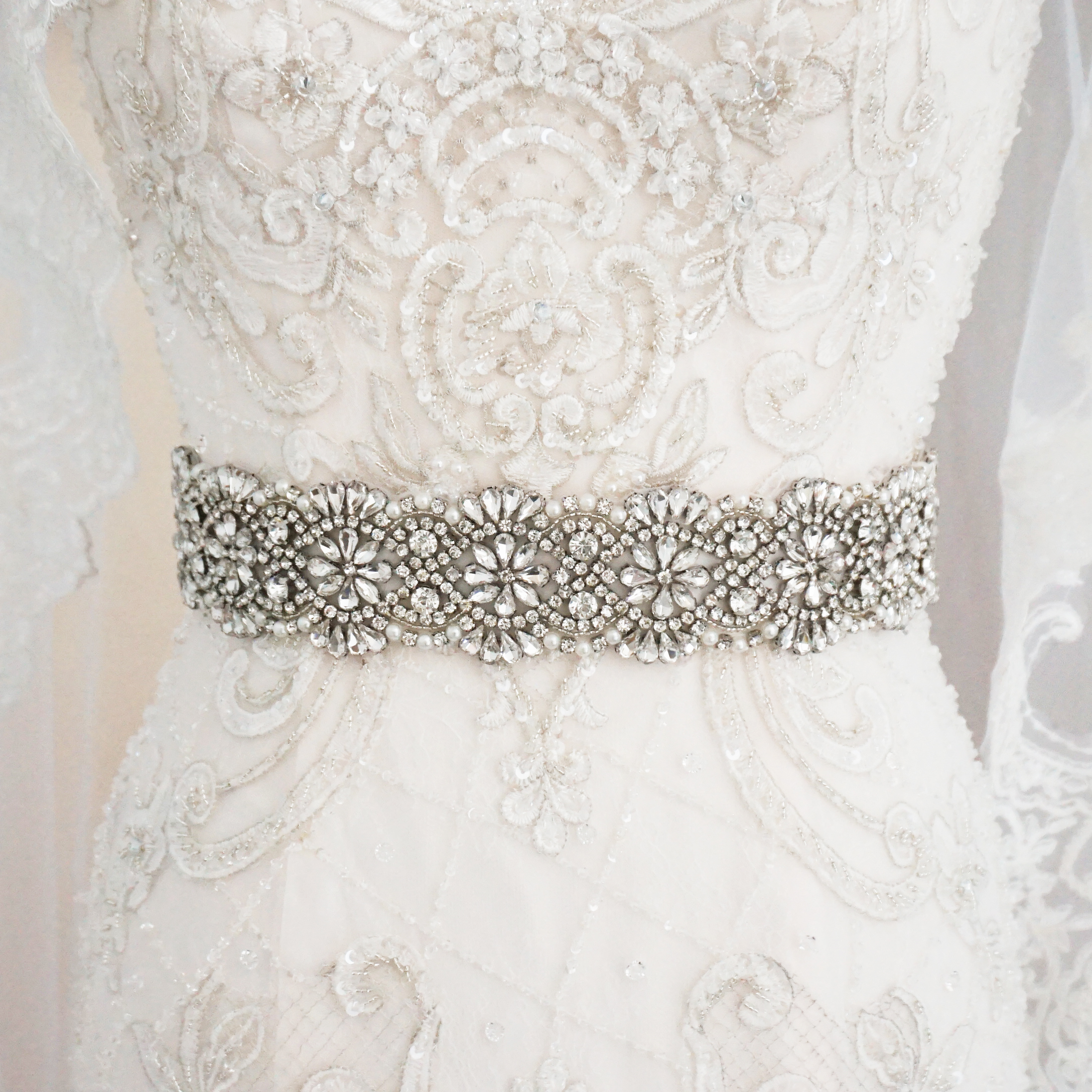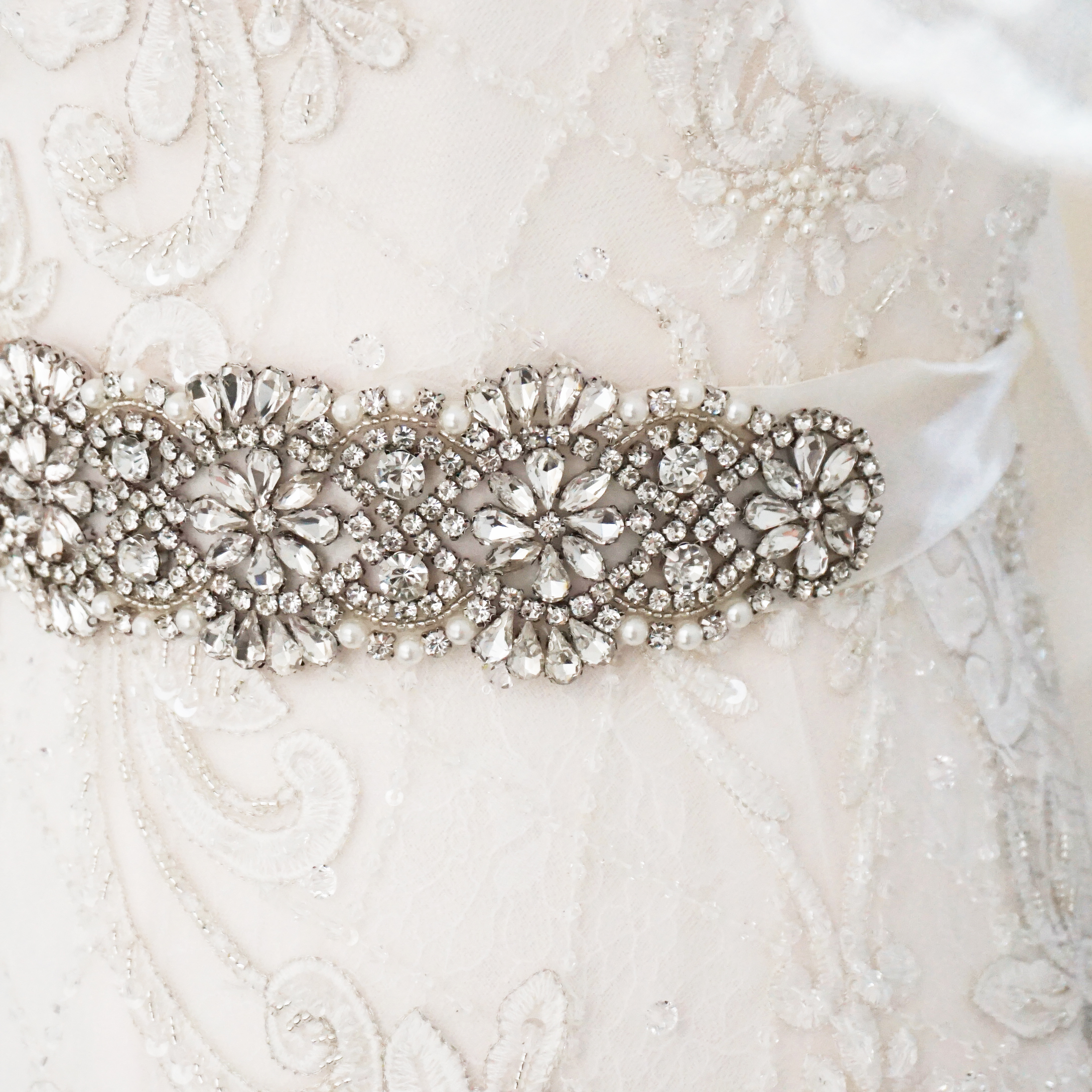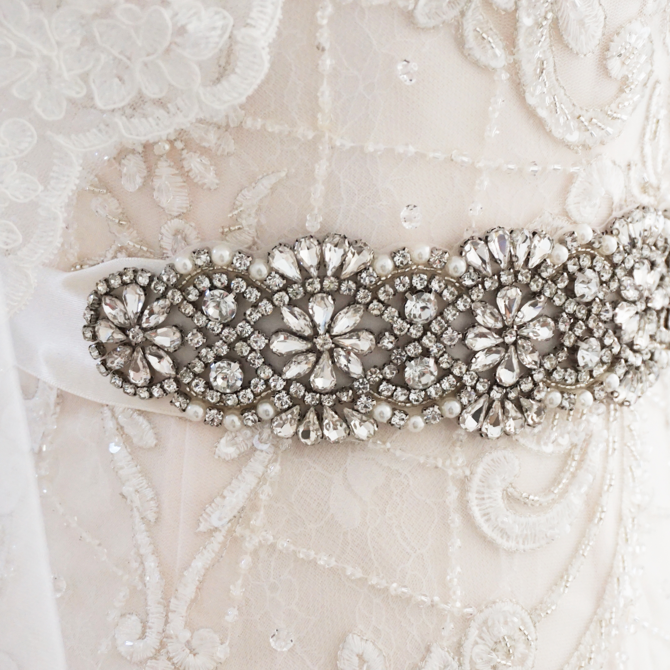 Handmade Pearl and Crystal Bridal Sash Belt for Dresses Rhinestone Trim Belt for Wedding Dresses Brides Gifts