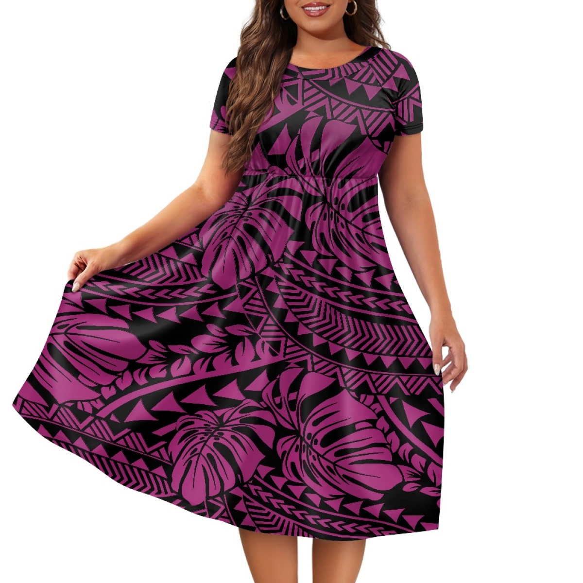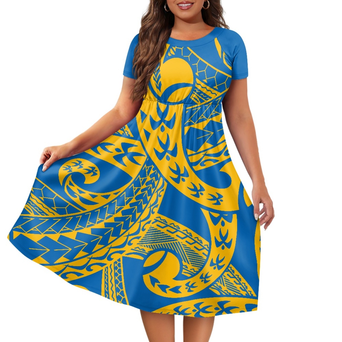 New Arrivals Polynesian Samoan Tribal Polyester Women's Short-sleeved Dress With Waist Tucked in Personality Fashion