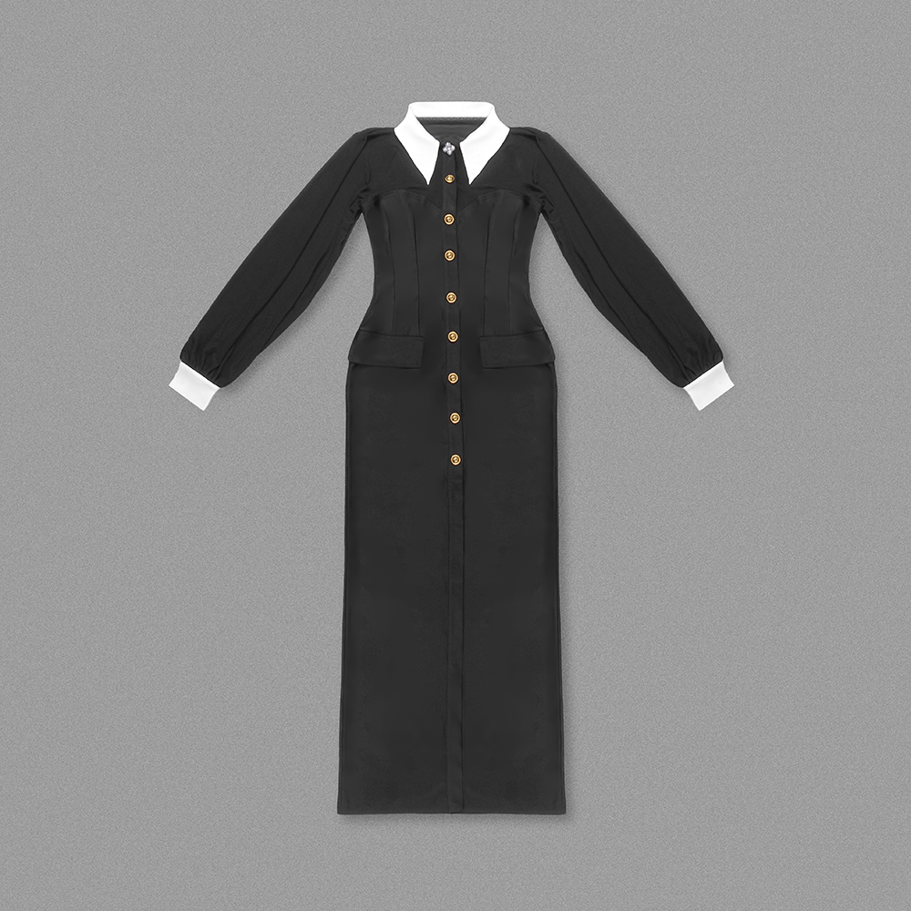 Women's Clothing Elegant Long Sleeves Cardigan Dresses Beading Pearls Casual Maxi Dress