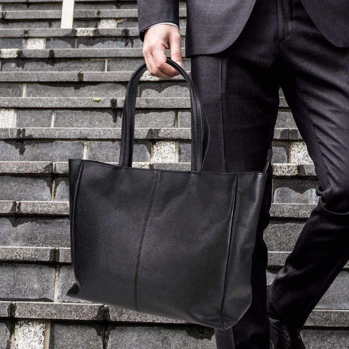 CC Cowhide Leather Bags Men Tote Bag L Size 02703 Women's Black High Quality Zipper Hand Tote Bag with Leather Handle