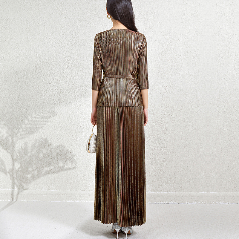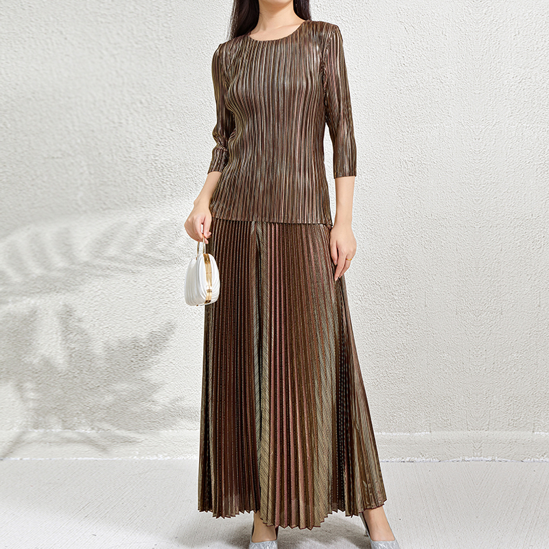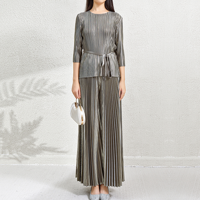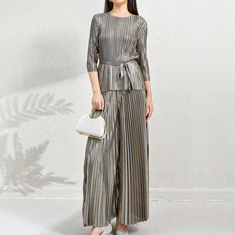 2024 Women Clothing Metallic Polyester Fabric Two Piece Set Women Clothing Shirt and Pants Set