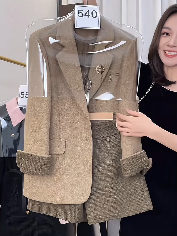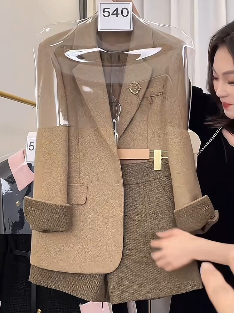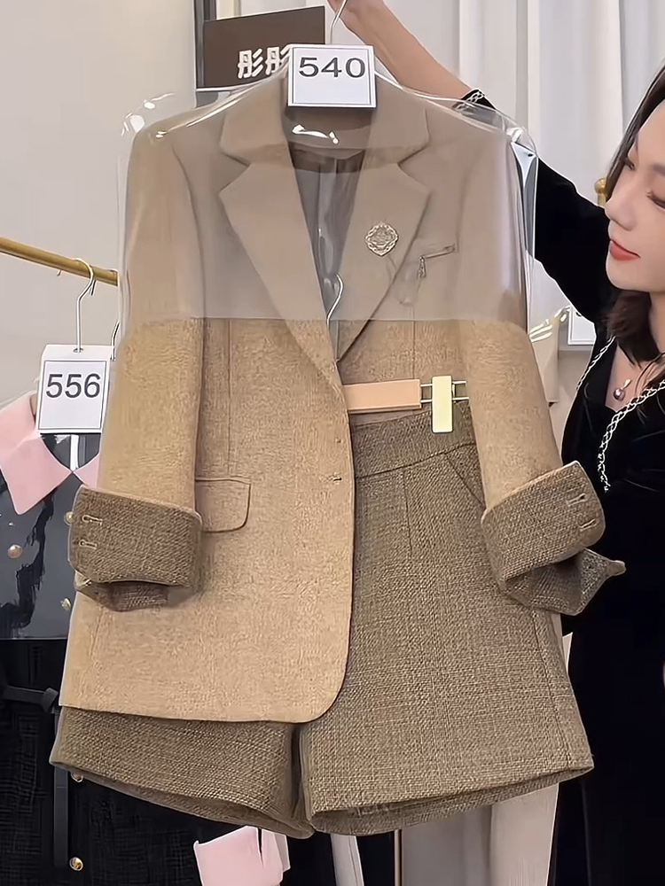 Custom Made High-grade Small Dress High-end Celebrity Temperament Khaki Suit Shorts Two-piece Suit for Women