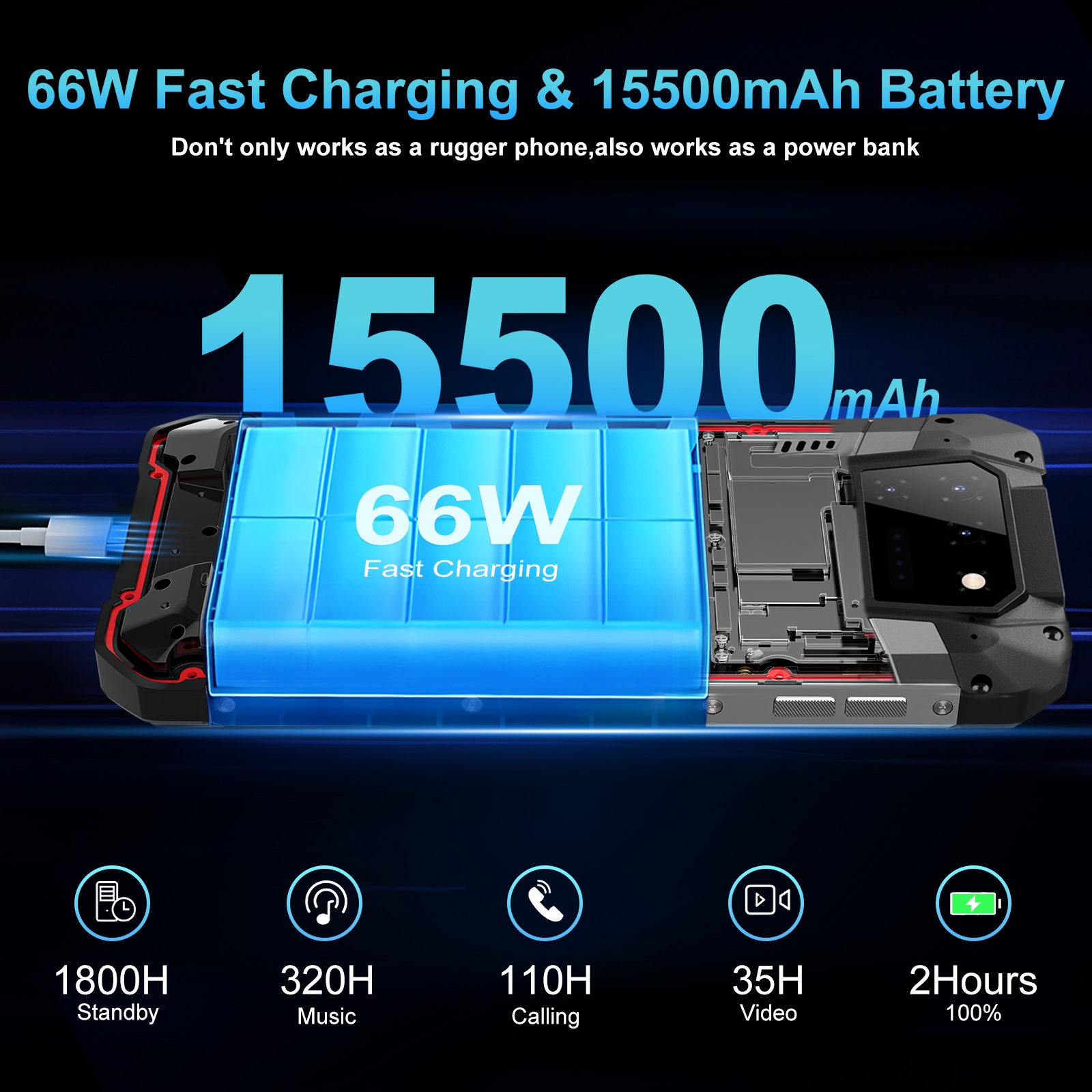 Unihertz Tank 2 8849 Global 4G Android 13 Mobile Phone 6.8" FHD+ 15500mAh Rugged Smart Phone With Laser Projector