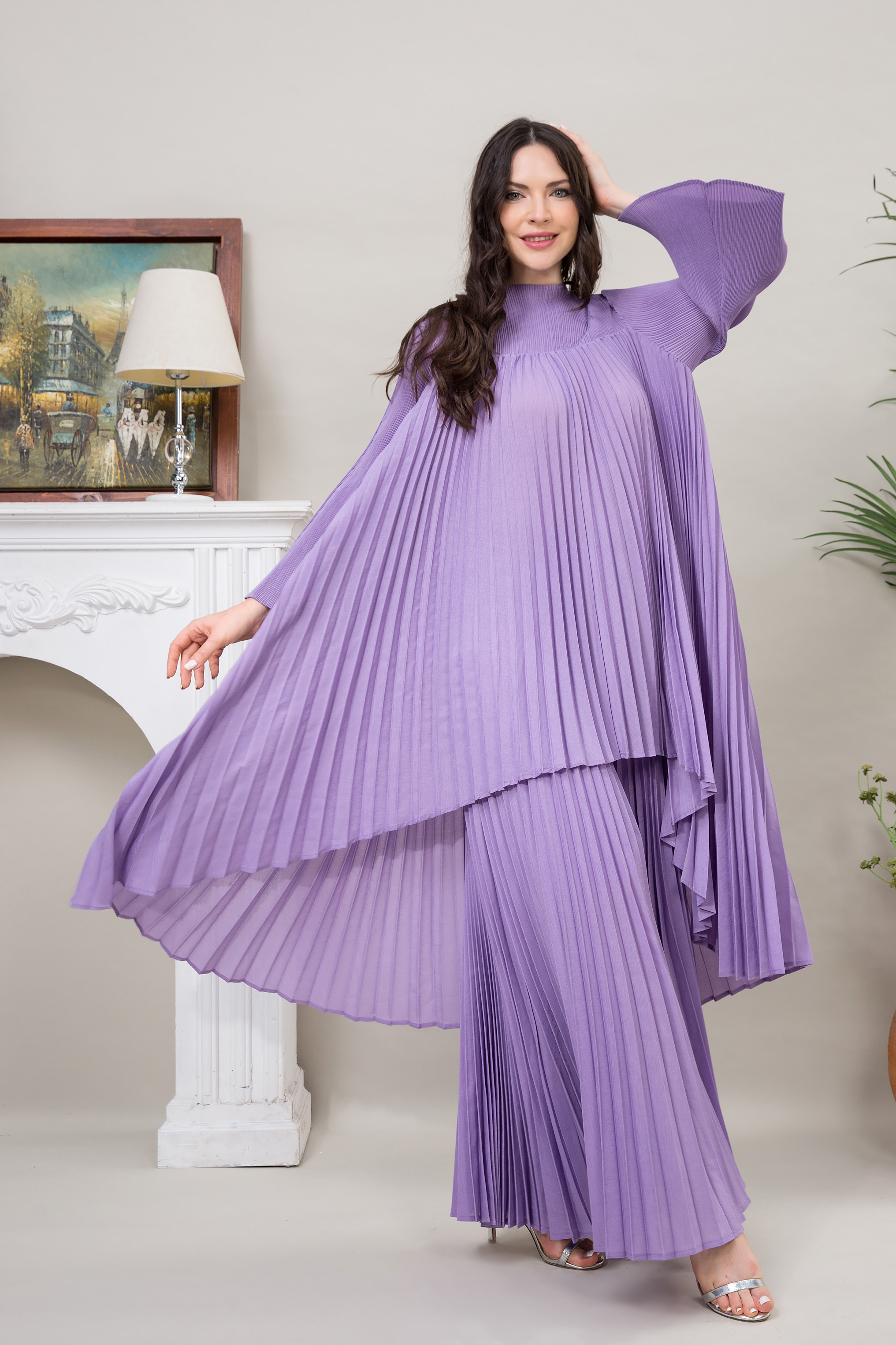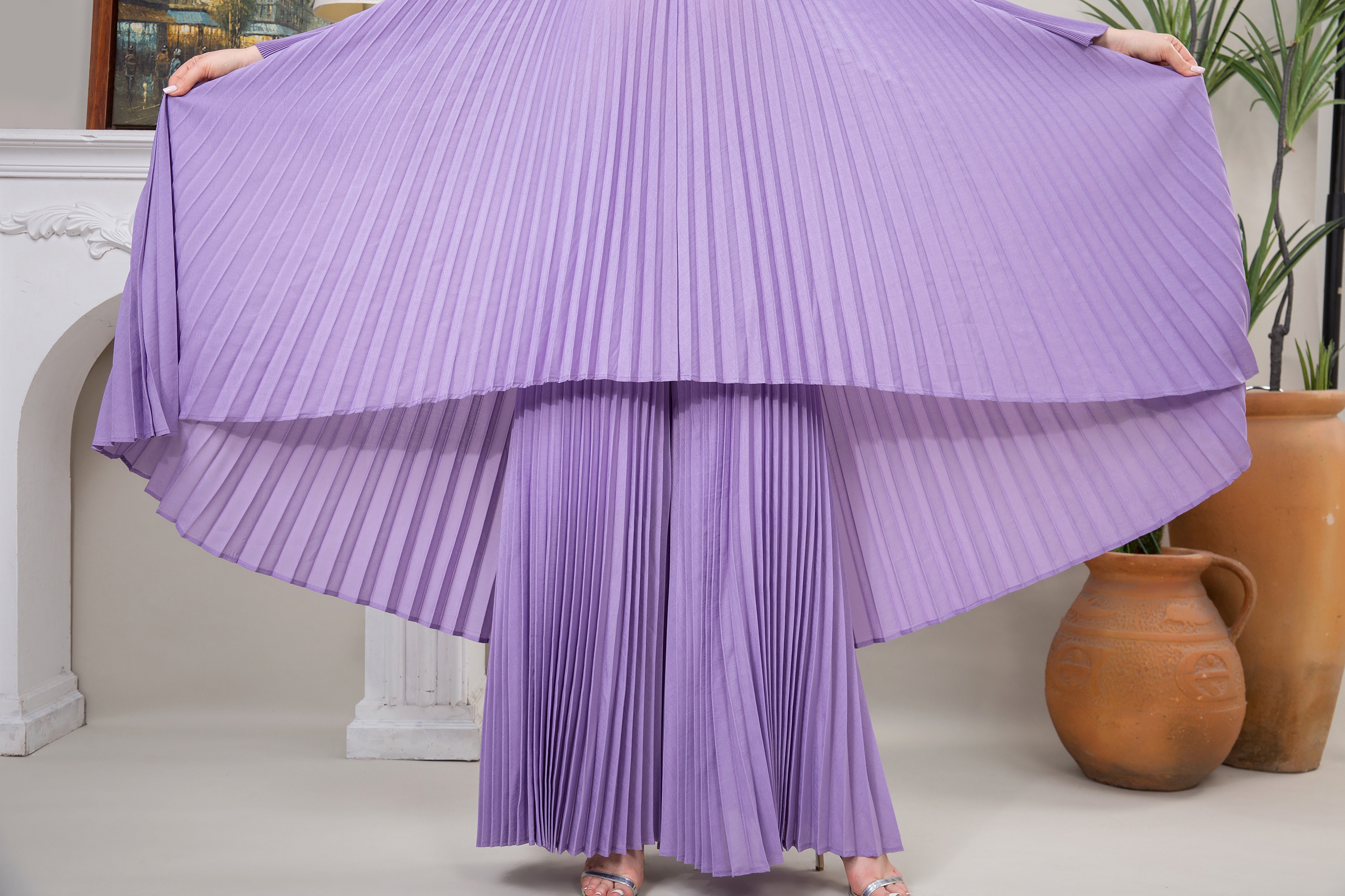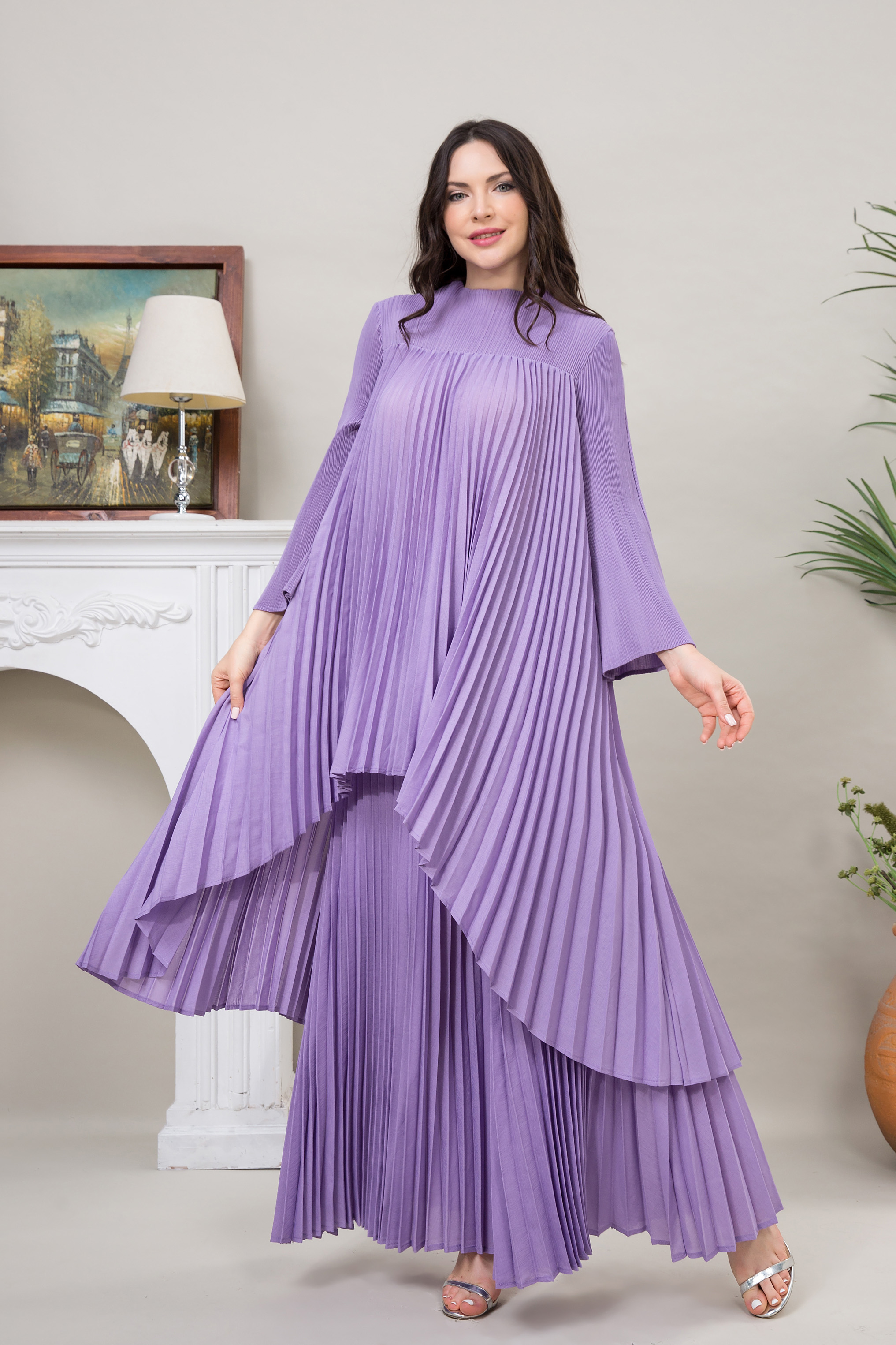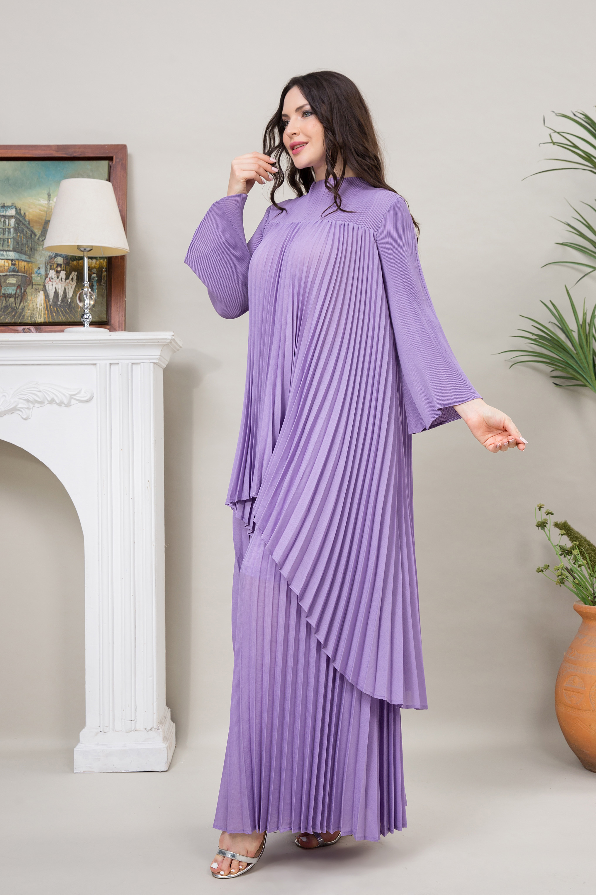 Top Fashion Woman's Solid Purple Maxi Dress Pleated Plus Size Loose Casual Modest Outfits for Adults Elegant Design Dresses
