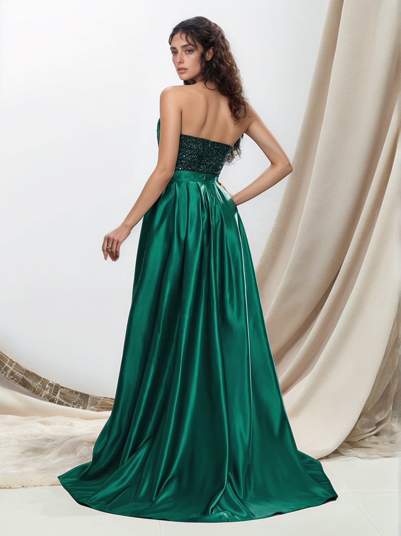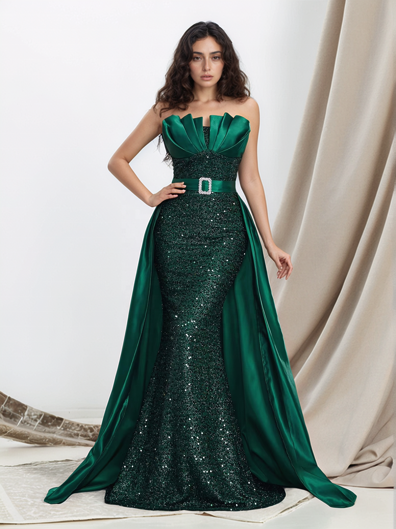 New Women's Elegant Mermaid Evening Dress with Lace Ruffles Satin Satin with Sequins Detachable Skirt for Prom or Bridesmaid