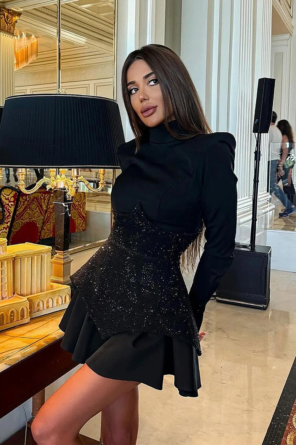 2025 New Women's Long Sleeve Sequin Casual Dress Elegant Round Neck Party Dress High-end Fashion Mini Dress