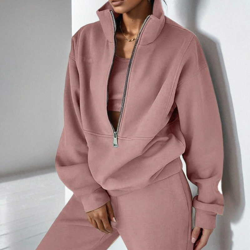 Custom Logo Fashion Large Sizes Winter Tracksuit Half Zipper Fleece Sweatshirt and Sweatpants Set Comfortable 2-piece Set