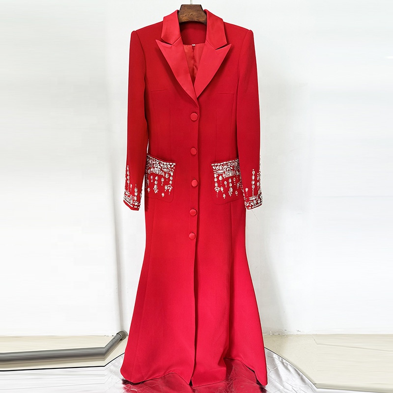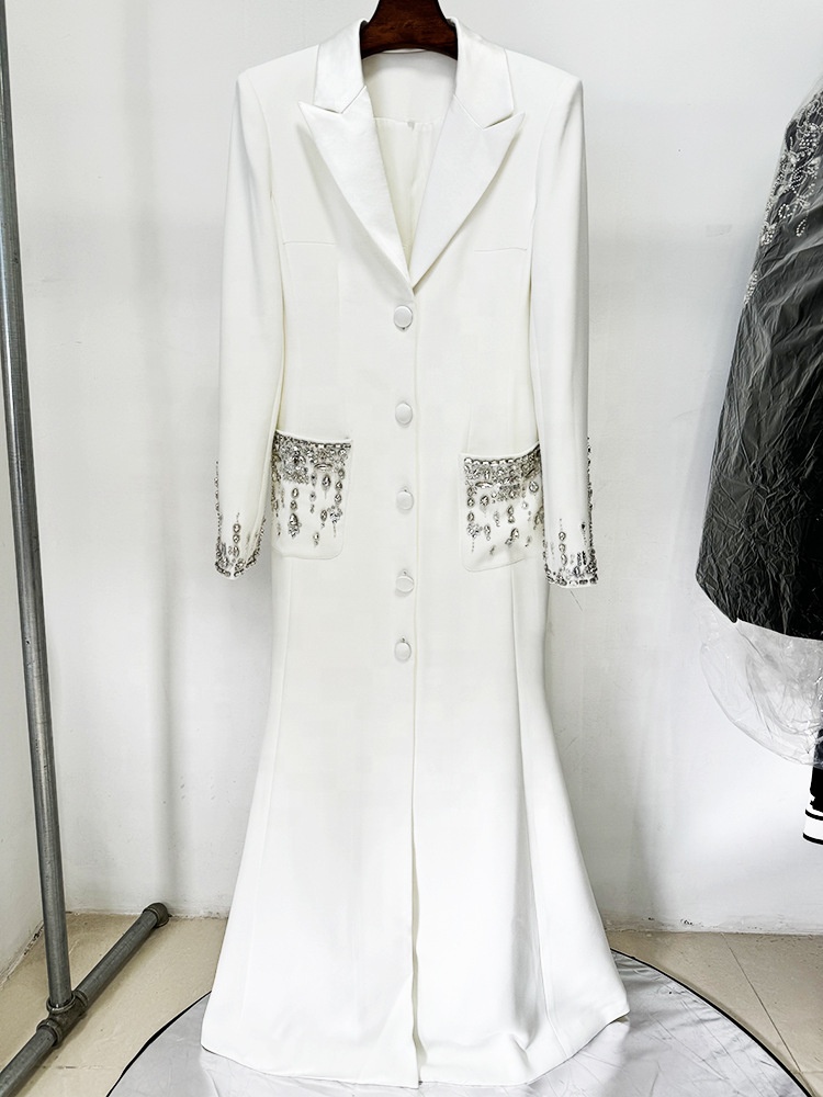 OUDINA Fashion Beaded Diamond Elegant Single Breasted Casual Maxi Long Fishtail Dress Party Women's Dresses