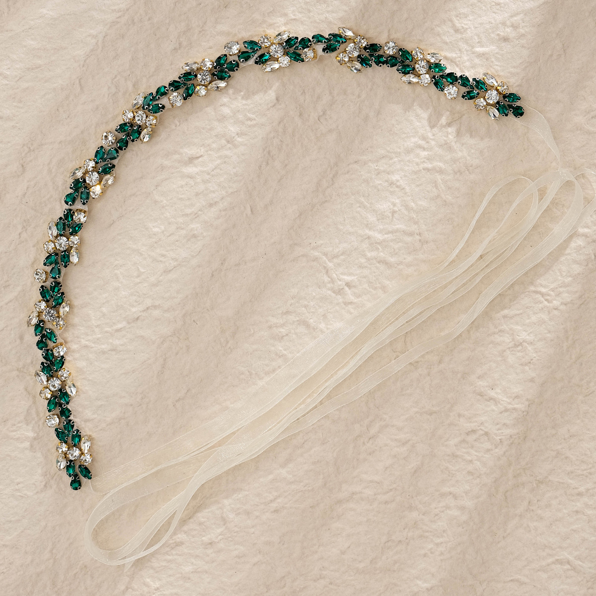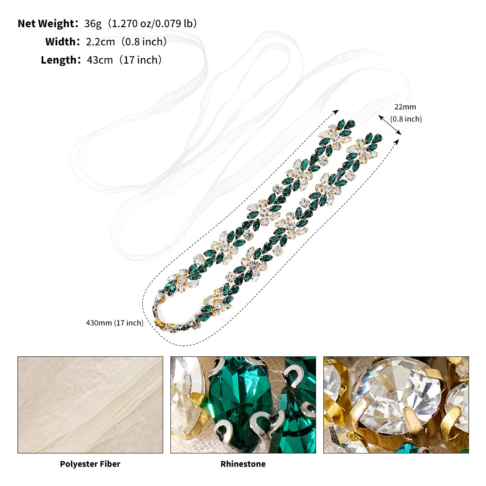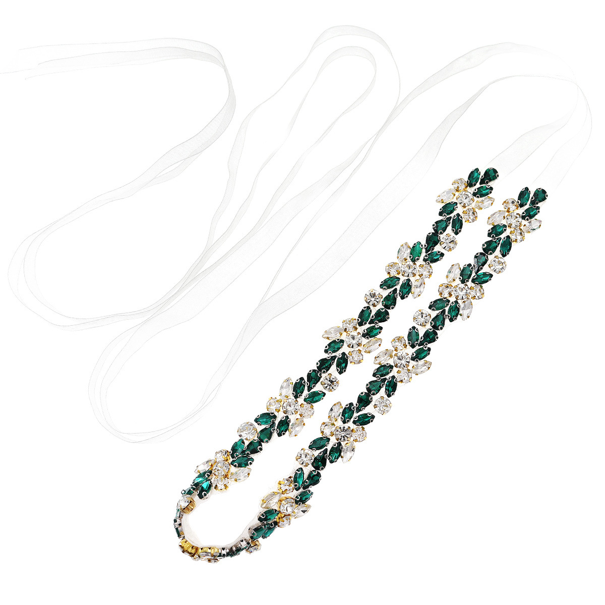 Green Crystal Rhinestone Wedding Belt Bridesmaid Bridal Dress Rhinestones Waistband Wedding Supplies
