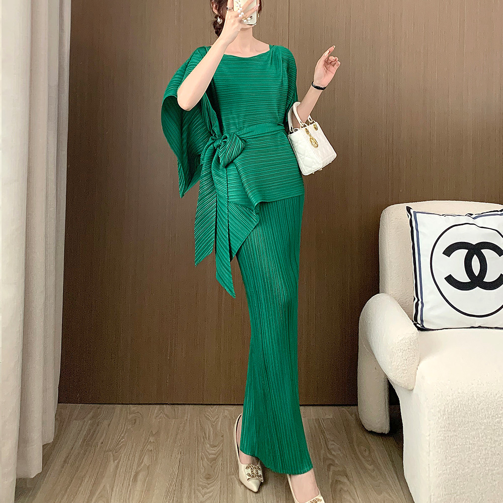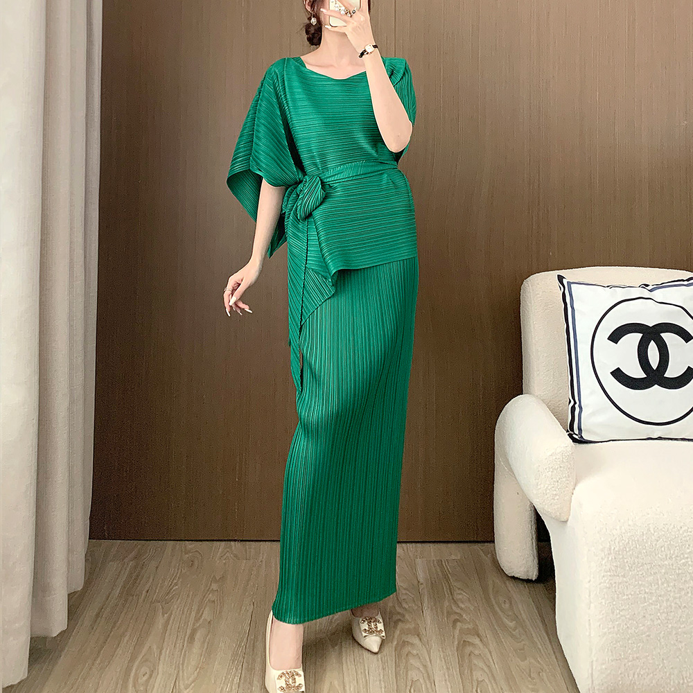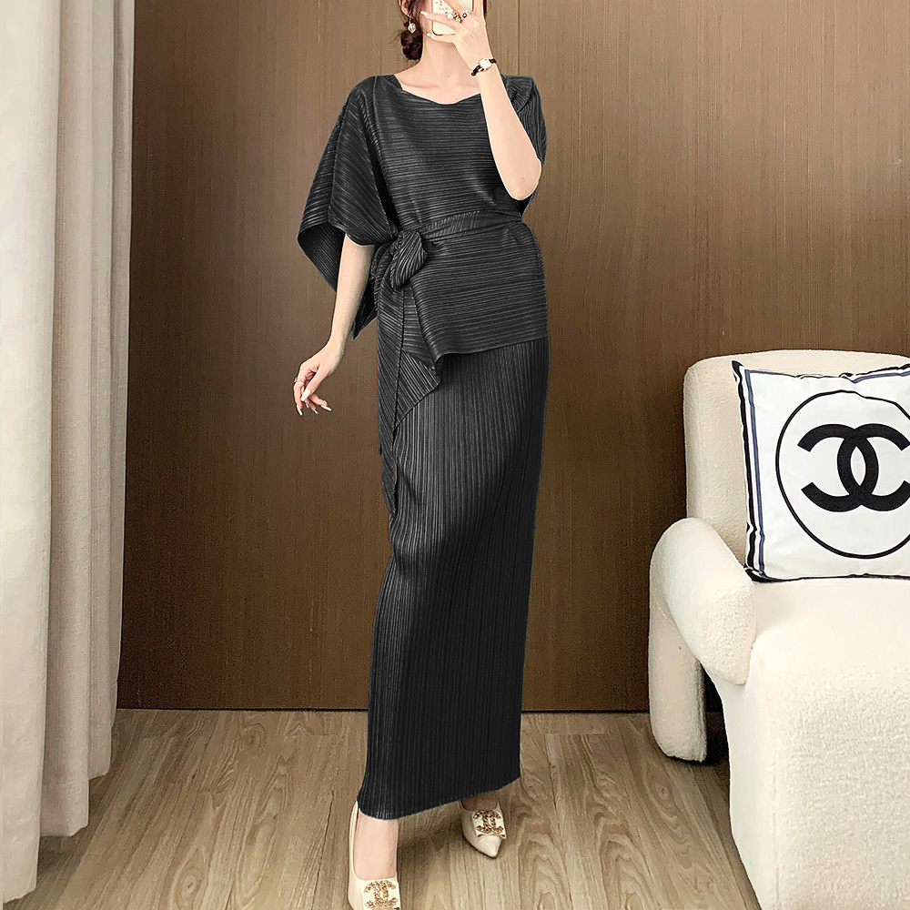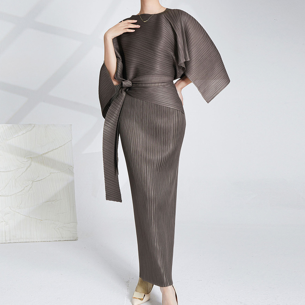Elegant Dress Suit Women Casual Shawl + Split Dress 2 Piece Set Miyake Pleated Women's Suits Custom Clothing Manufacturer