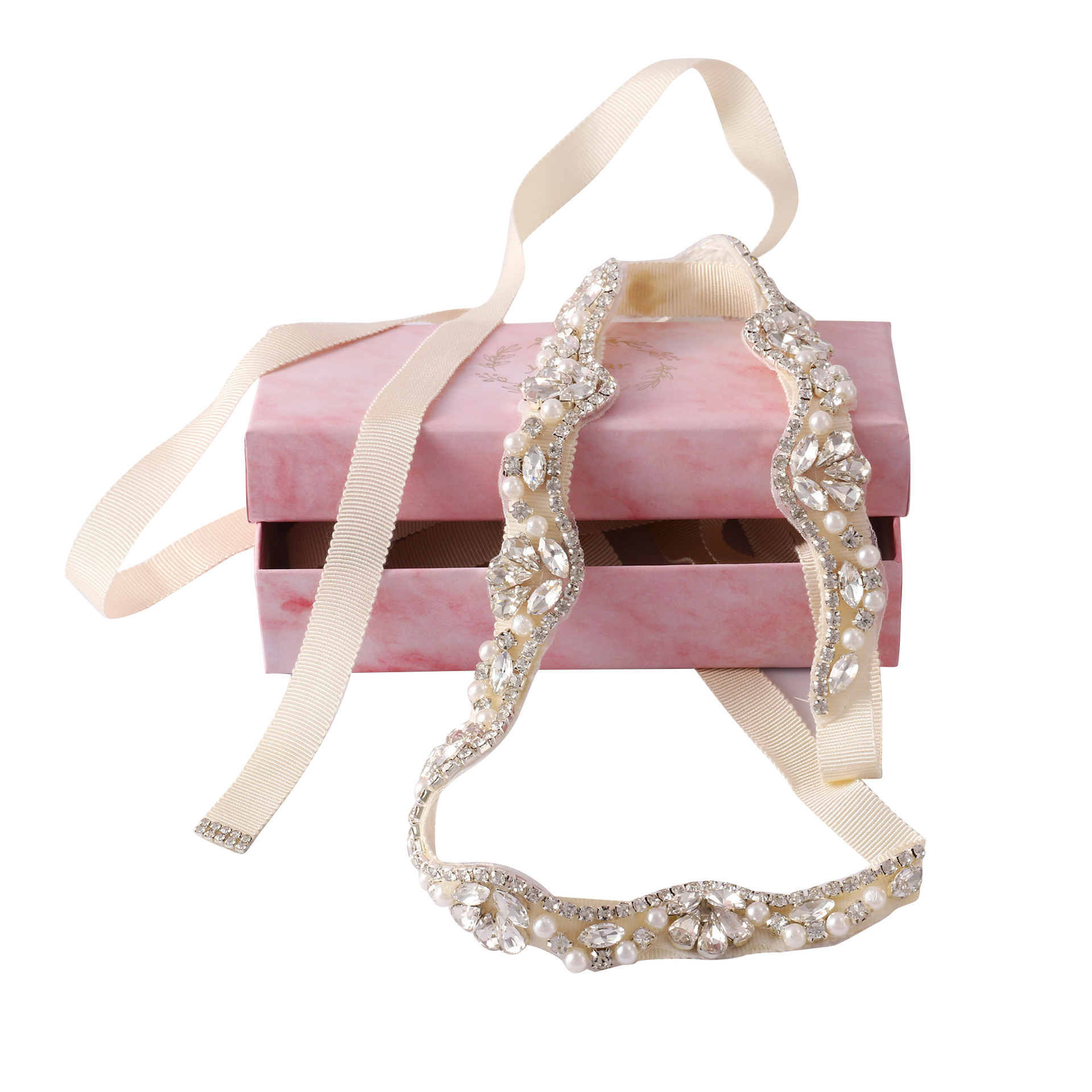 Rhinestone Belt Bridal Crystal Pearl Wedding Sash Bead Trim Women Gowns Sash