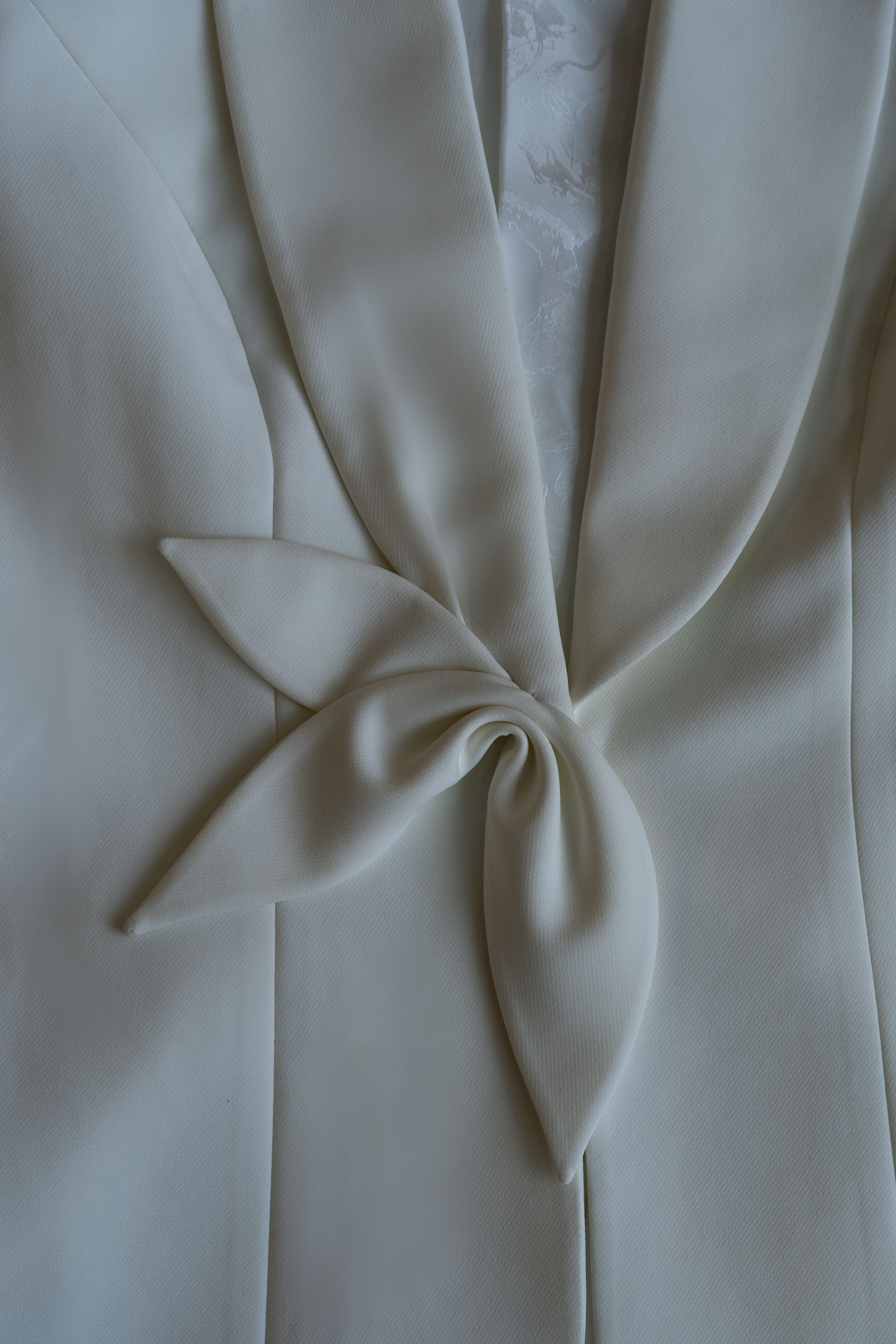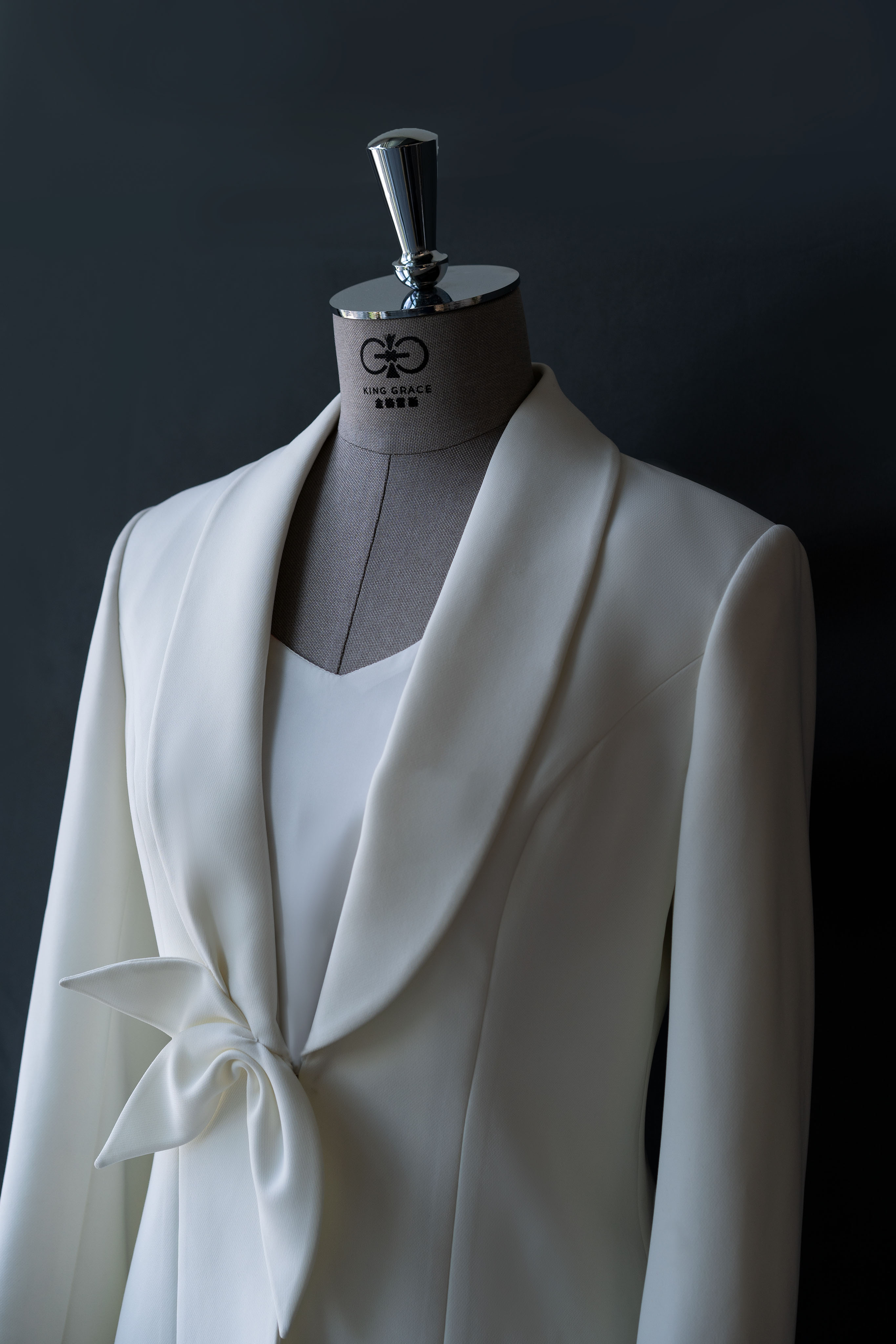Women's Formal Evening Wear Business Office Suit Set Tuxedo-Style Blazer with Shawl Collar Sashes Worsted Fabric Work Office