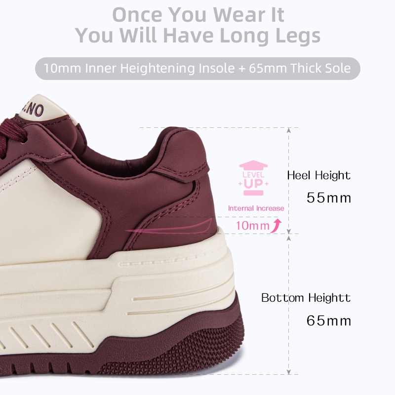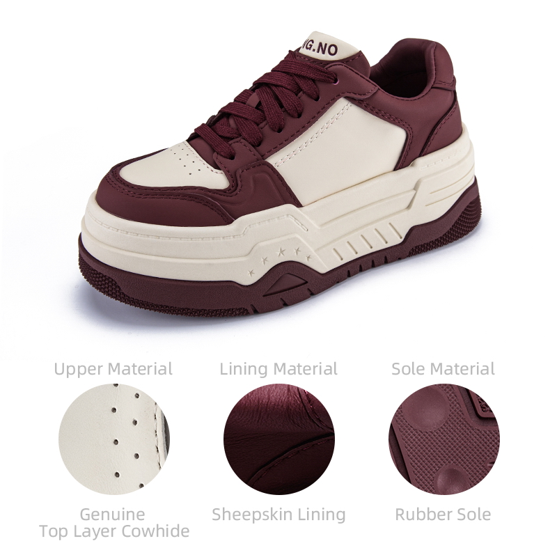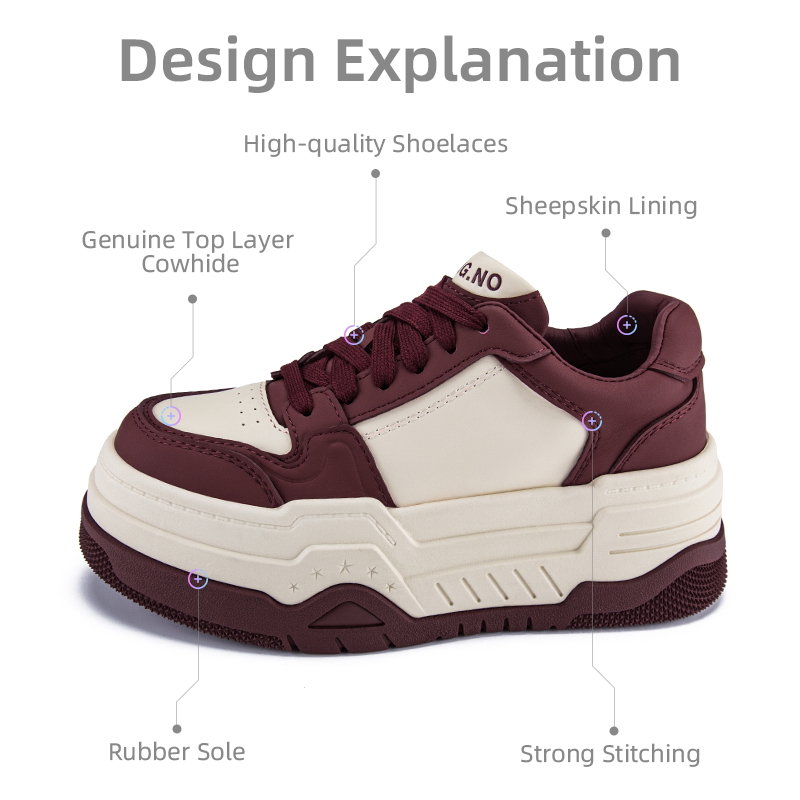 Casual Skate Shoes Genuine Leather Thick Sole Fashionable Women's Casual Sneakers