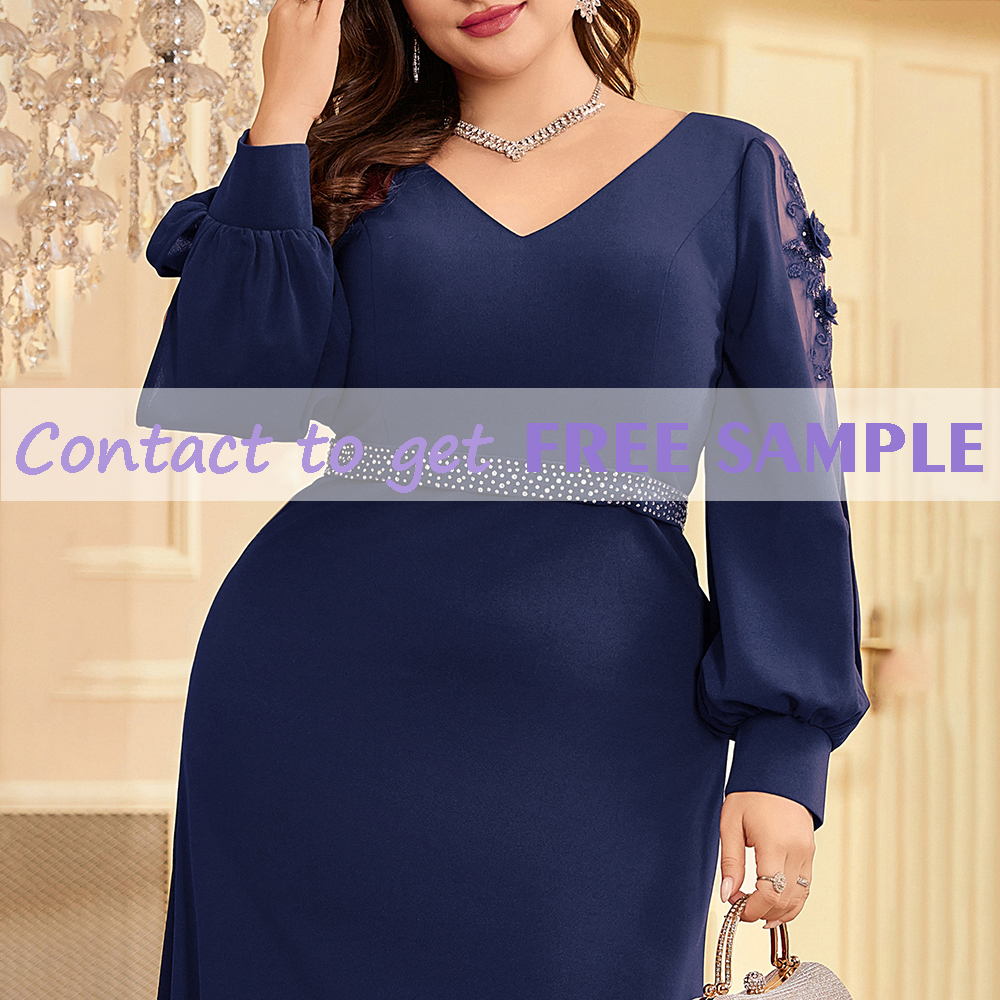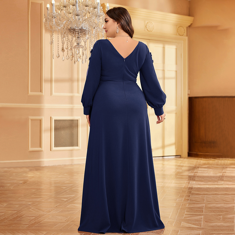 TEENYEE Most Popular Women's Long Sleeves Church Dress Formal Dress V Neck Mother of the Bride Plus Size Dresses for Event