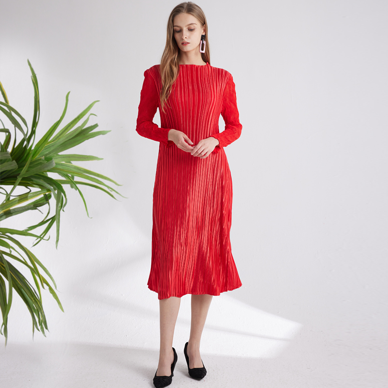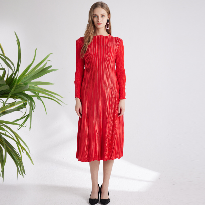 New Long-sleeved Fashion Dress Loose Casual Temperament Pleated Free Size Skirt Women's Clothing
